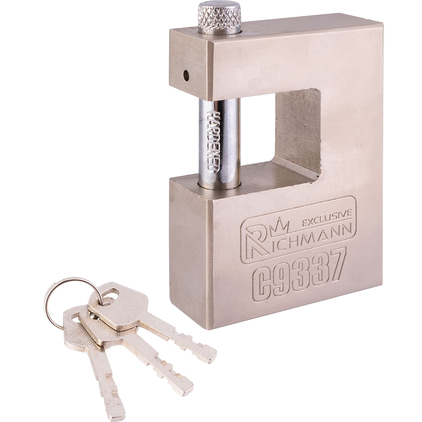 Stalowa kłódka zasuwkowa trzpieniowa do długości 70 mm.