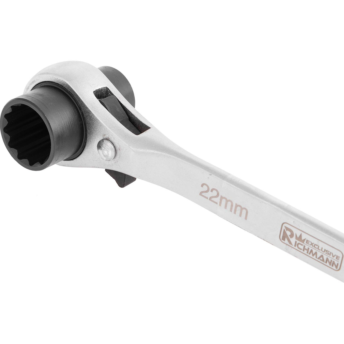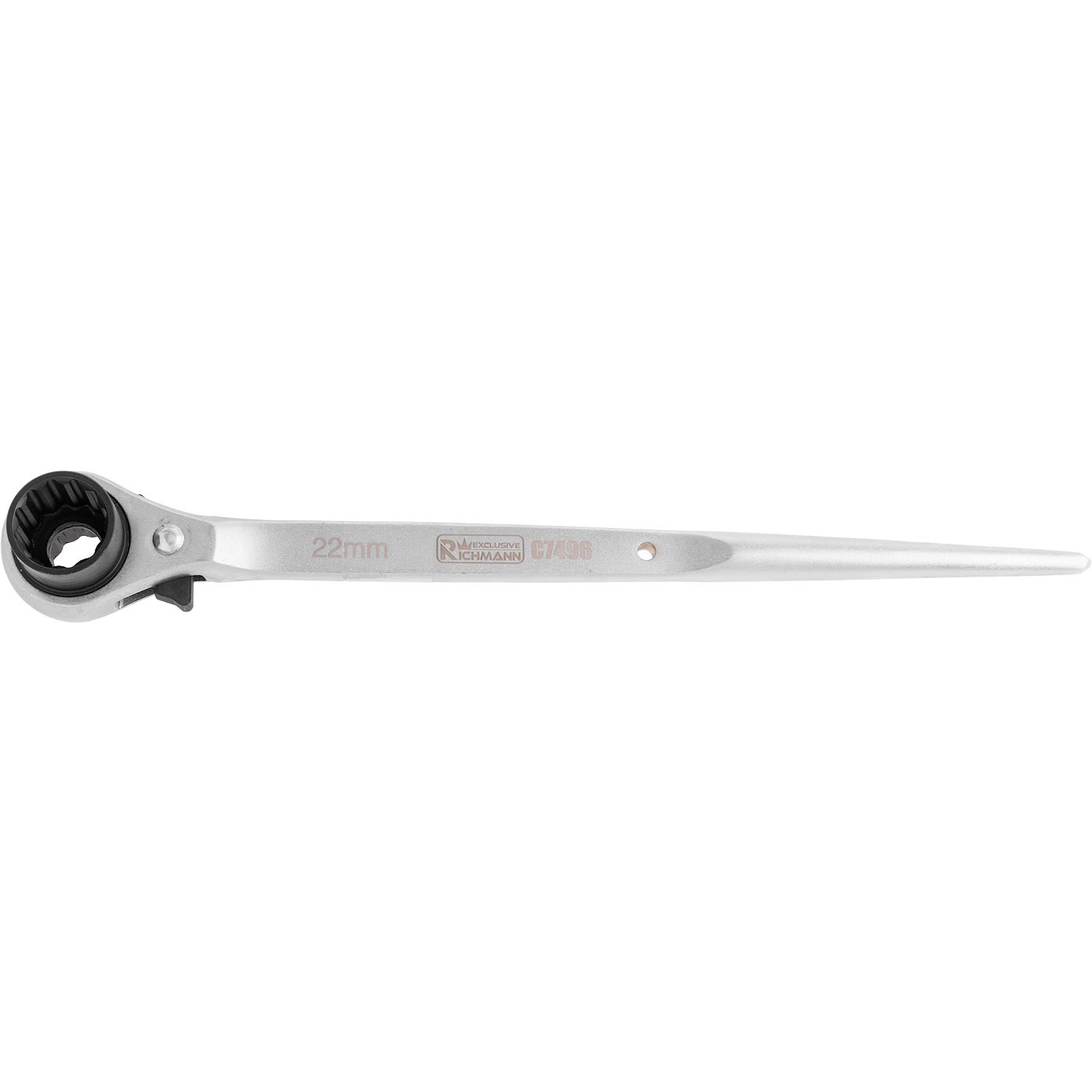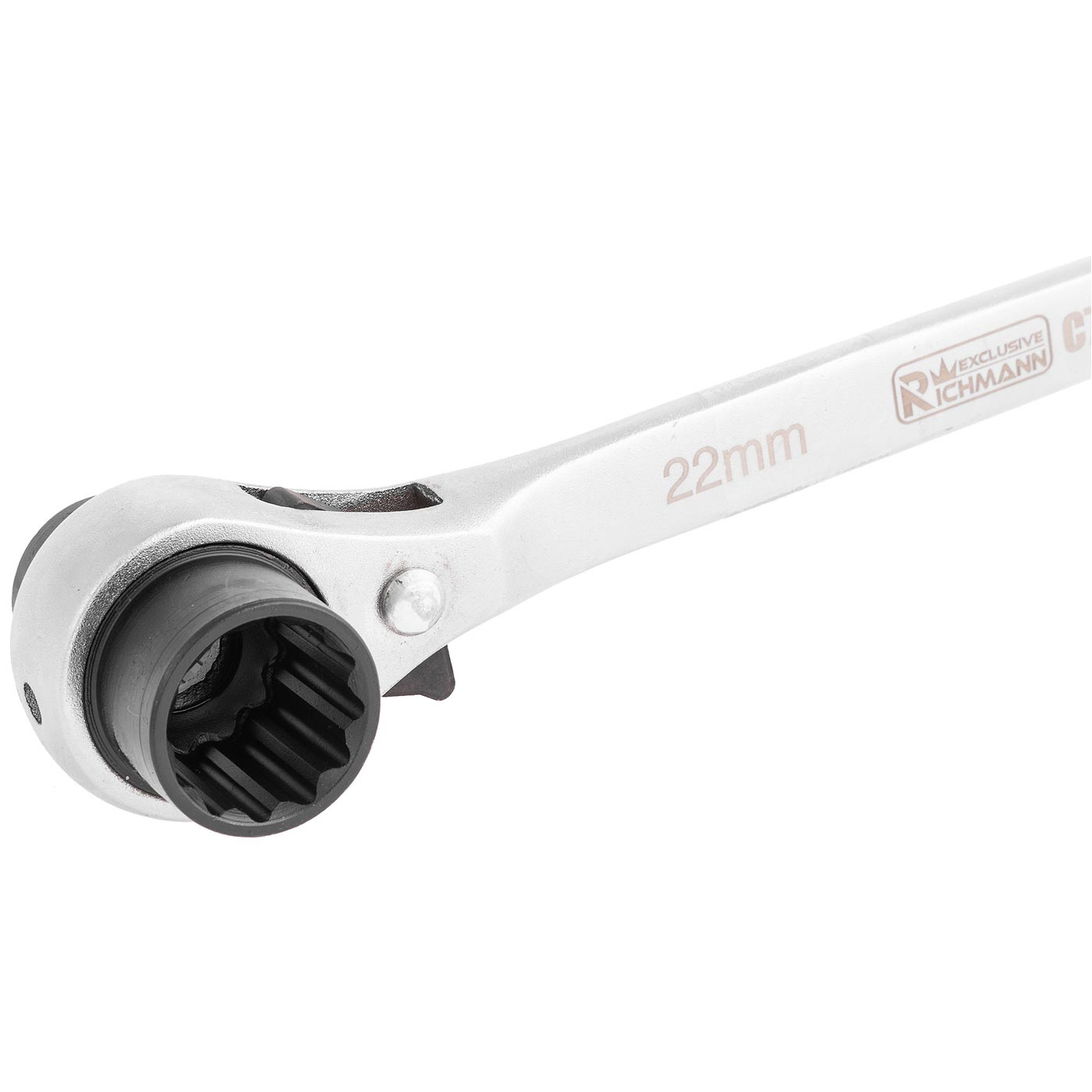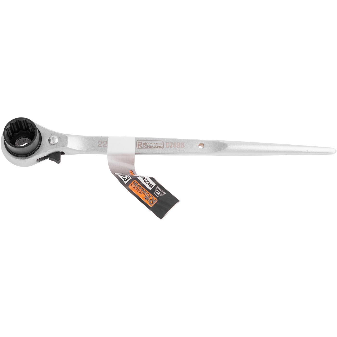 Podwójny klucz 12- kątny z grzechotką do rusztowań w rozmiarach 19x22 mm.