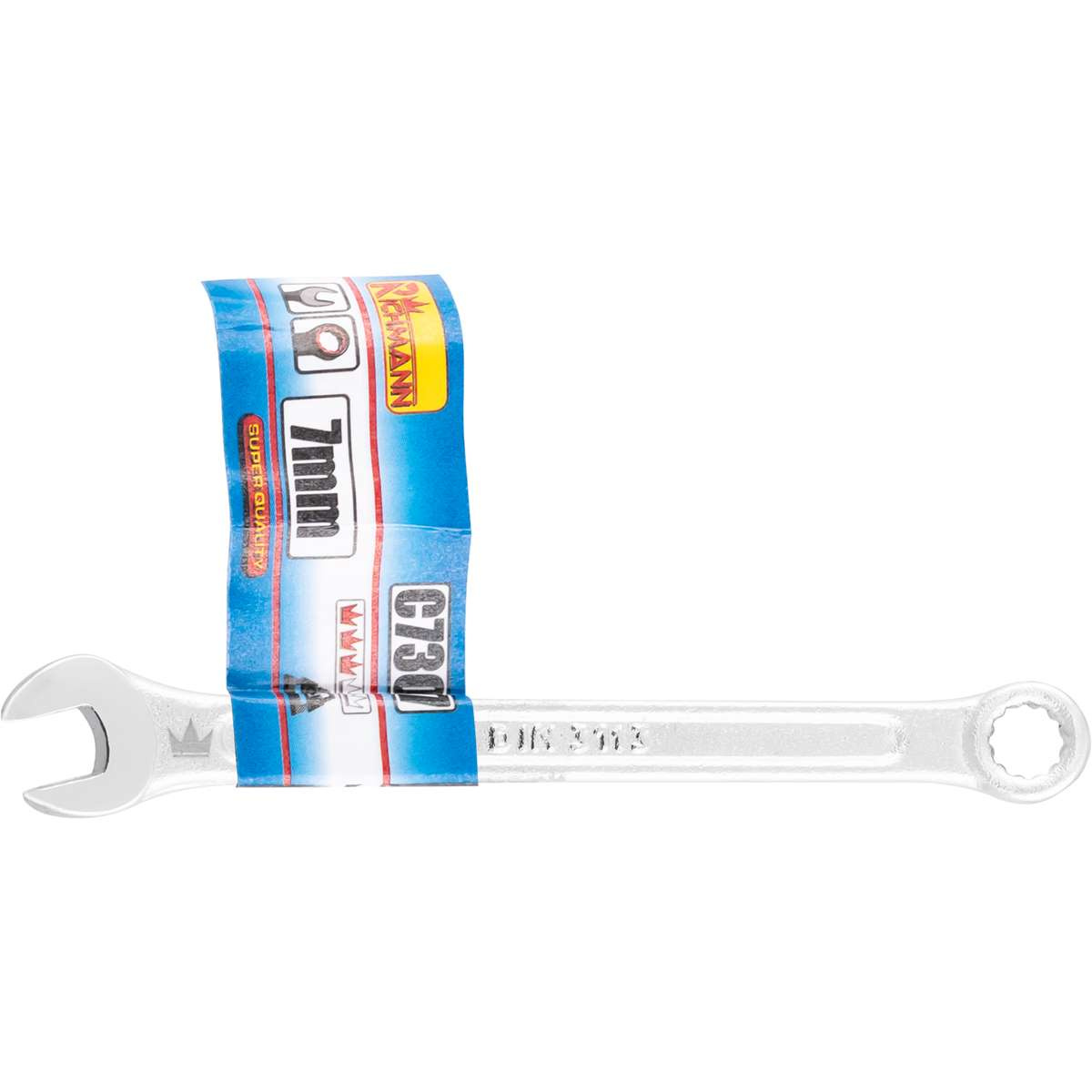 Klucz płasko-oczkowy w rozmiarze 7 mm.