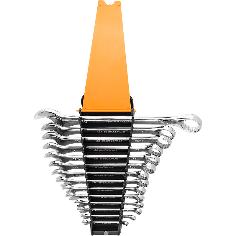 Zestaw 14 sztuk kluczy płasko-oczkowych calowych w zakresie rozmiarów: ¼”- 1¼”.