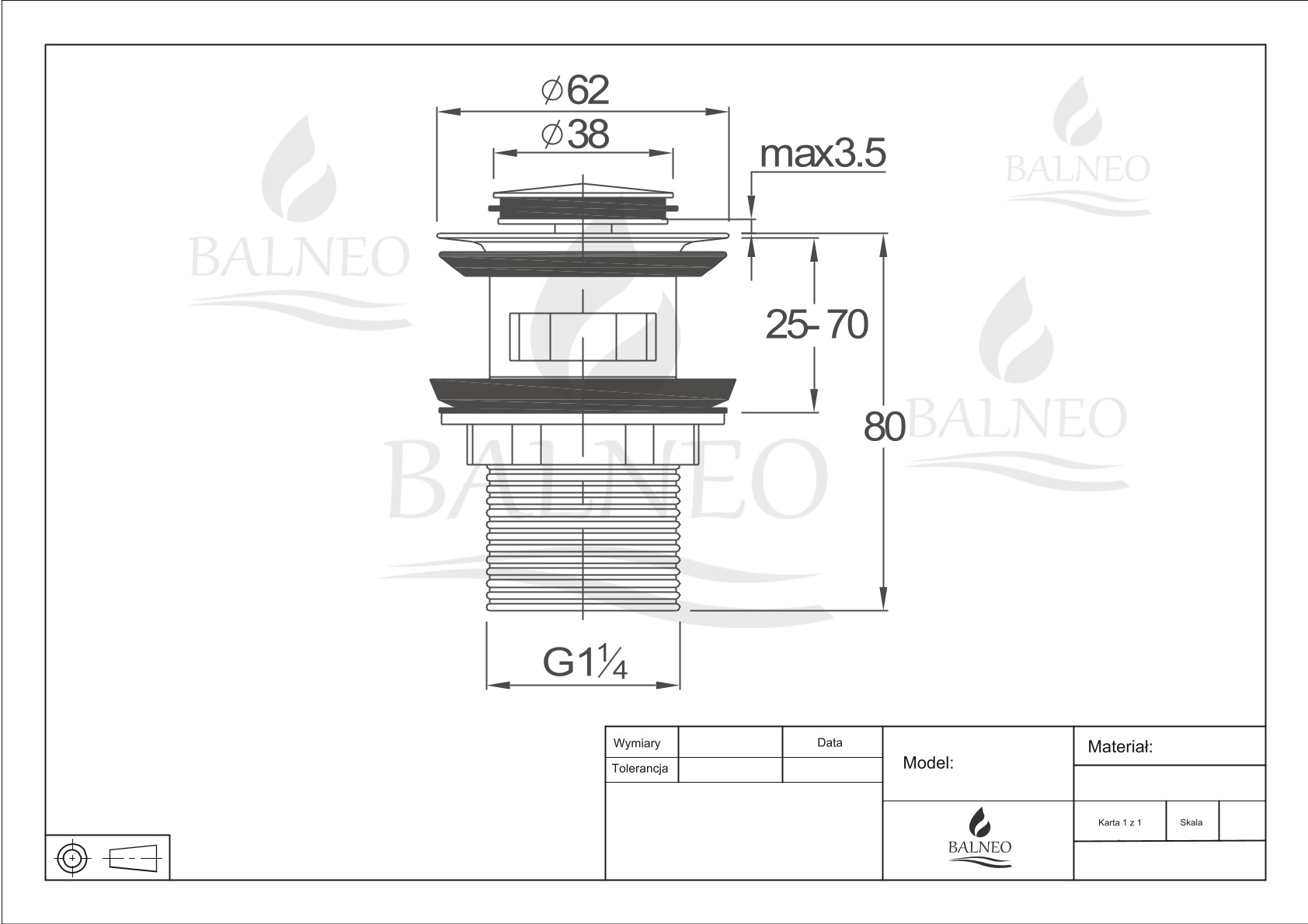 - Średnica gwintu: G1 1/4