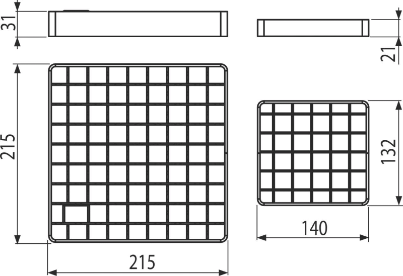 - Wymiary rusztu 215 × 215 mm, 132 × 140 mm