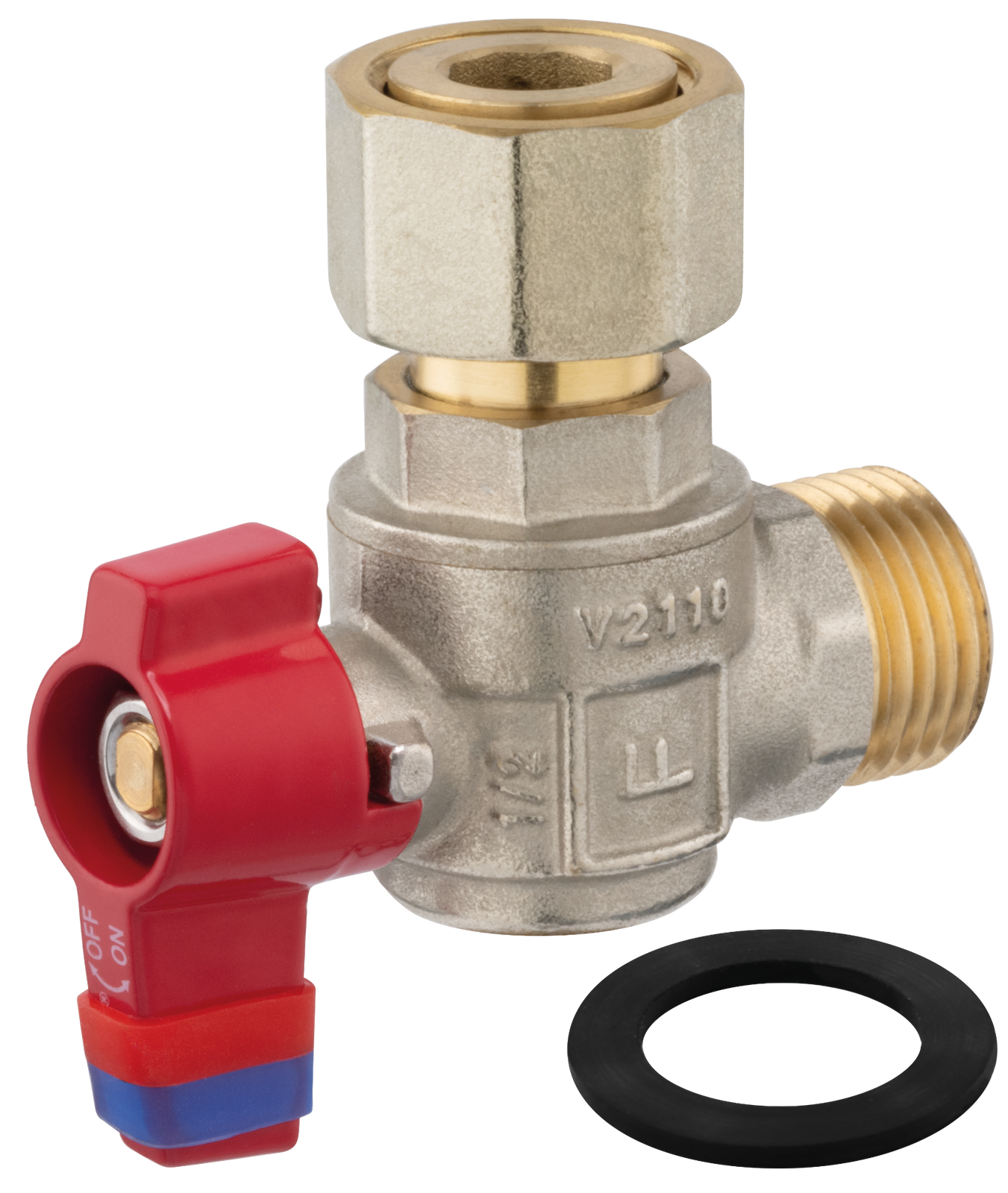 "Kurek kulowy kątowy z półśrubunkiem, nakrętno-wkrętny, z motylkiem, 1/2"""