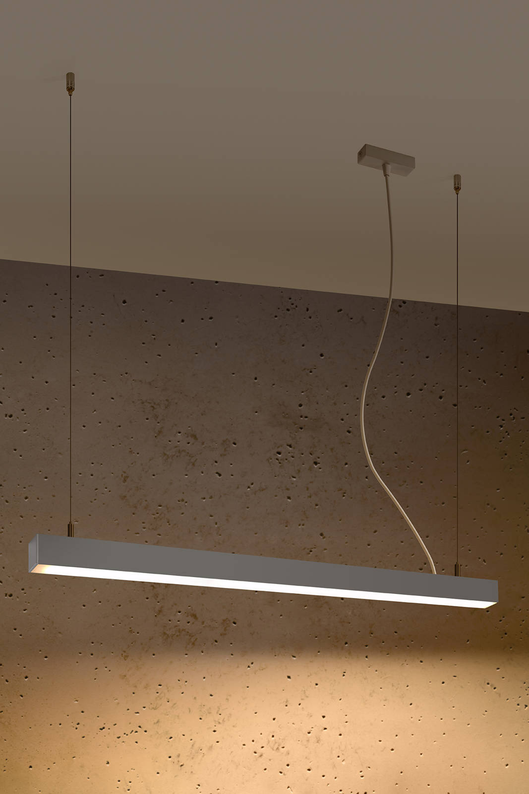 - Źródło światła: moduł LED, 24W, 3120lm, 3000K, 50-60Hz, ~220-230V, IP20, CRI90, klasa ochronności I Źródło światła jest w komplecie. Wymiary: 90/6/150 cmMateriał: aluminiumKolor: szaryPrzesłona: opal