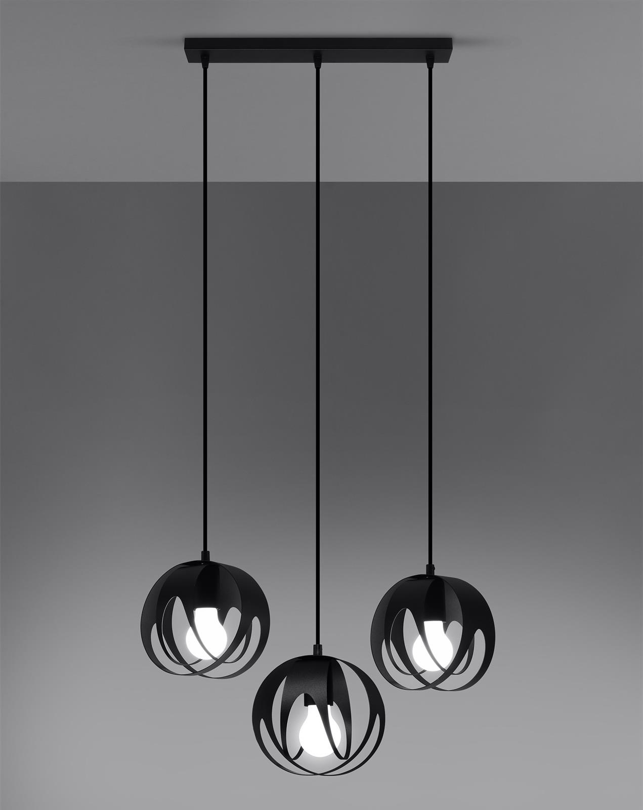 - Źródło światła: E27, 3x60W, 3x15W LED, 50-60Hz, ~220-230V, IP20, klasa ochronności IŹródło światła nie jest w komplecie. Wymiary: 50/16/117 cmWymiary klosza: 16/18 cmMateriał: stalKolor: czarny