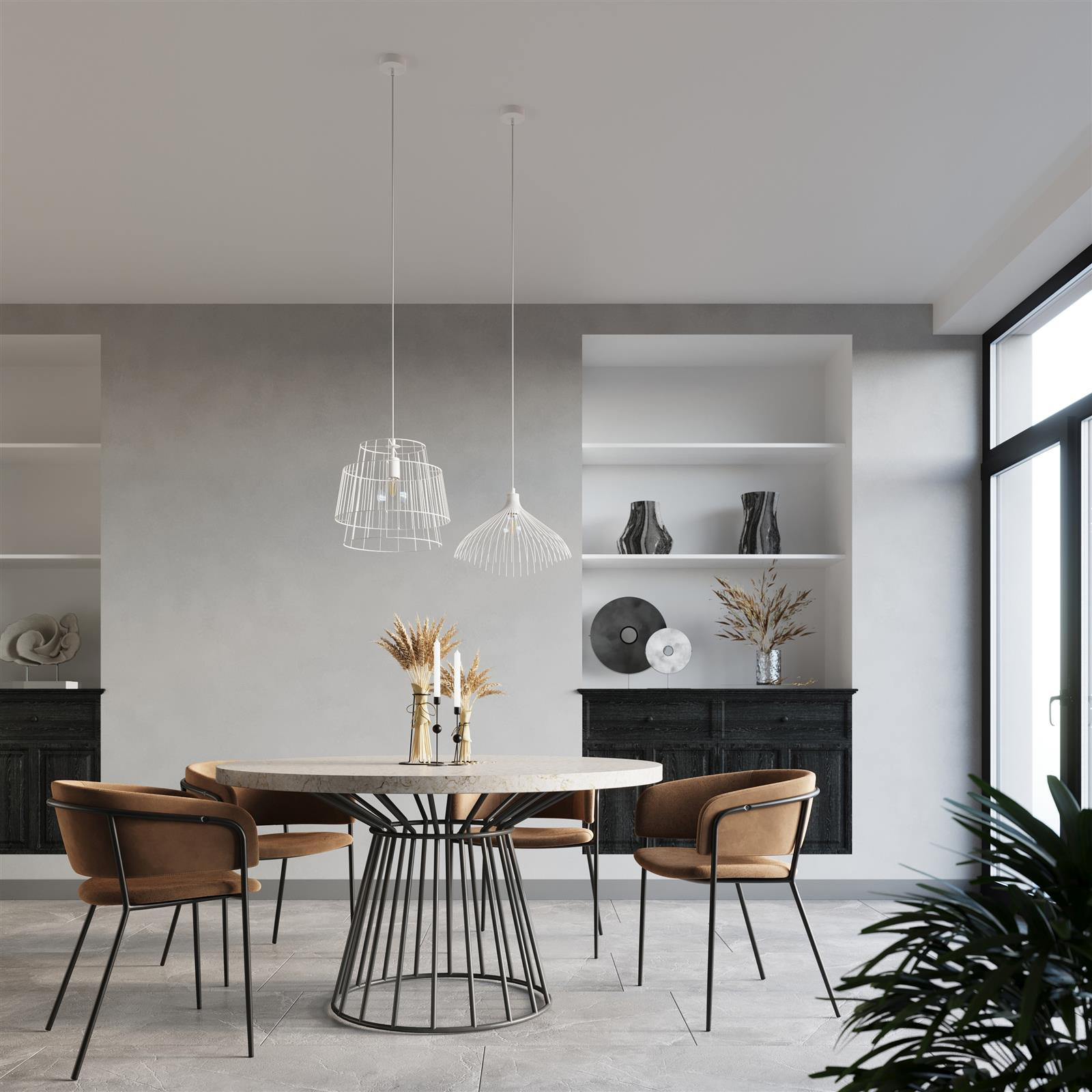 Wprowadź do swojego mieszkania industrialny klimat z lampą wiszącą UMB. Żarówka ukryta w dwóch drucianych kloszach sprawia, że światło rozchodzi się równomiernie, dając jednocześnie ciekawy cień na ścianie. Zaproś je do swojego wnętrza i zobacz, jaką jest ozdobą samą w sobie!