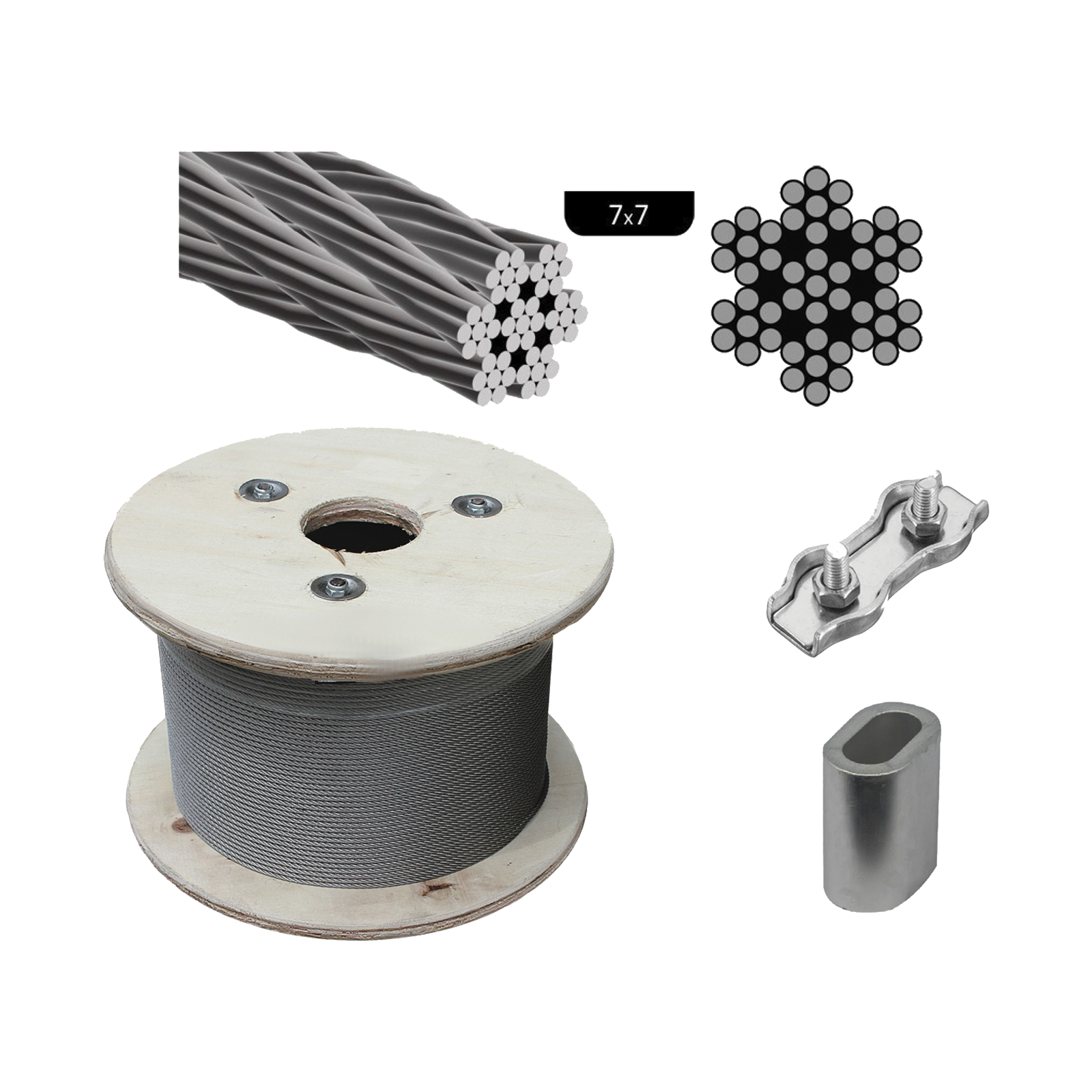 Linka wykonana ze stali nierdzewnej w konstrukcji 7x7. Linki mogą być wykorzystywane do podwieszania pomp głębinowych w studniach oraz odwiertach. Linka została wykonana ze stali nierdzewnej AISI 304 dzięki czemu jest całkowicie odporna na działanie warunków atmosferycznych. Wraz z linkami dostępne są klamry ze stali nierdzewnej oraz zaciski z aluminium.