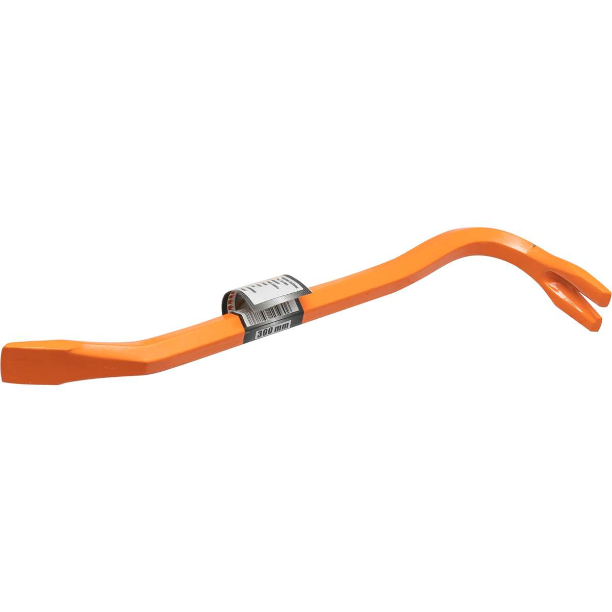 Uniwersalny łom budowlany o wymiarach 300 x 15 mm z wyciągaczem do gwoździ.