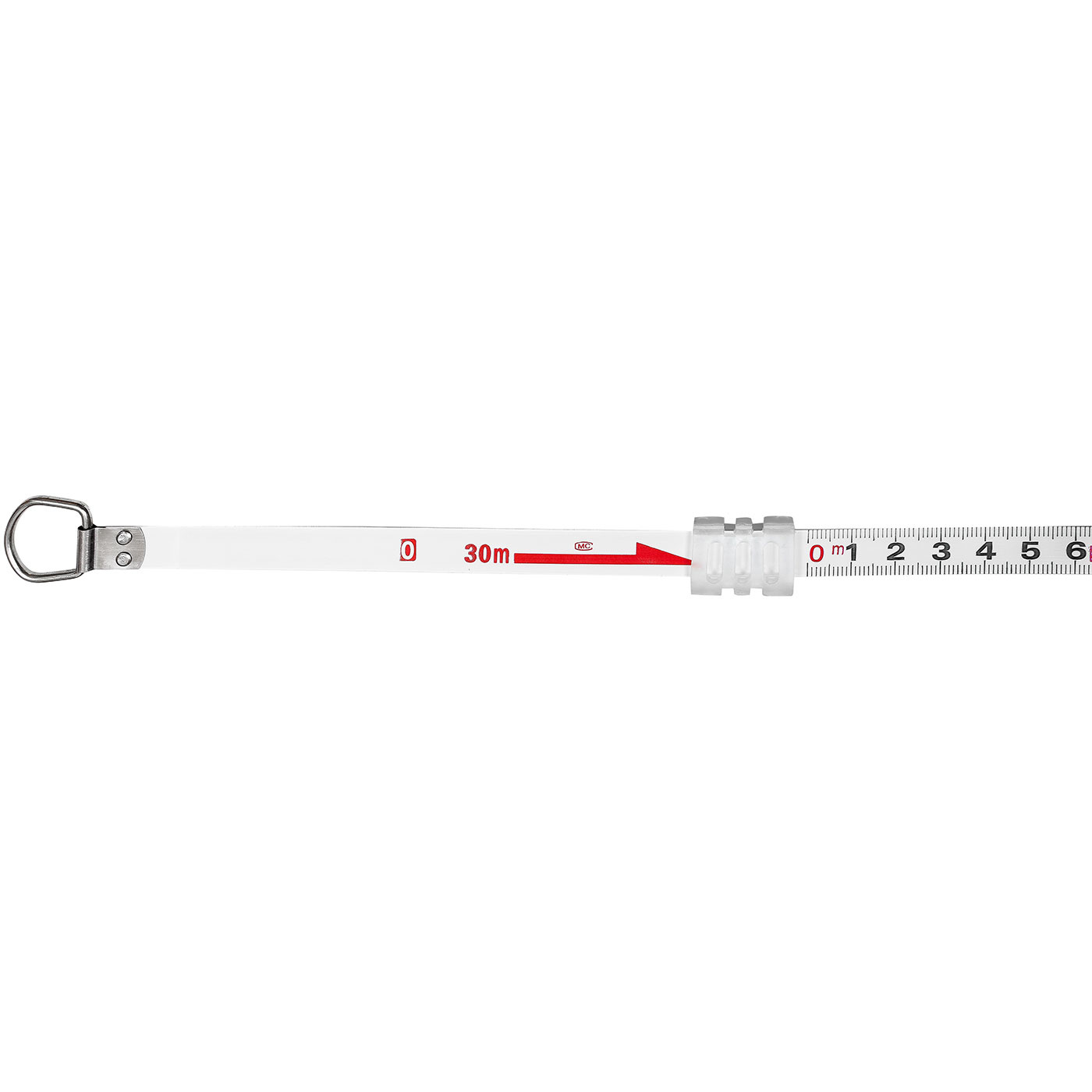 Stalowa miara zwijana o długości 30 m z rozbiegówką.