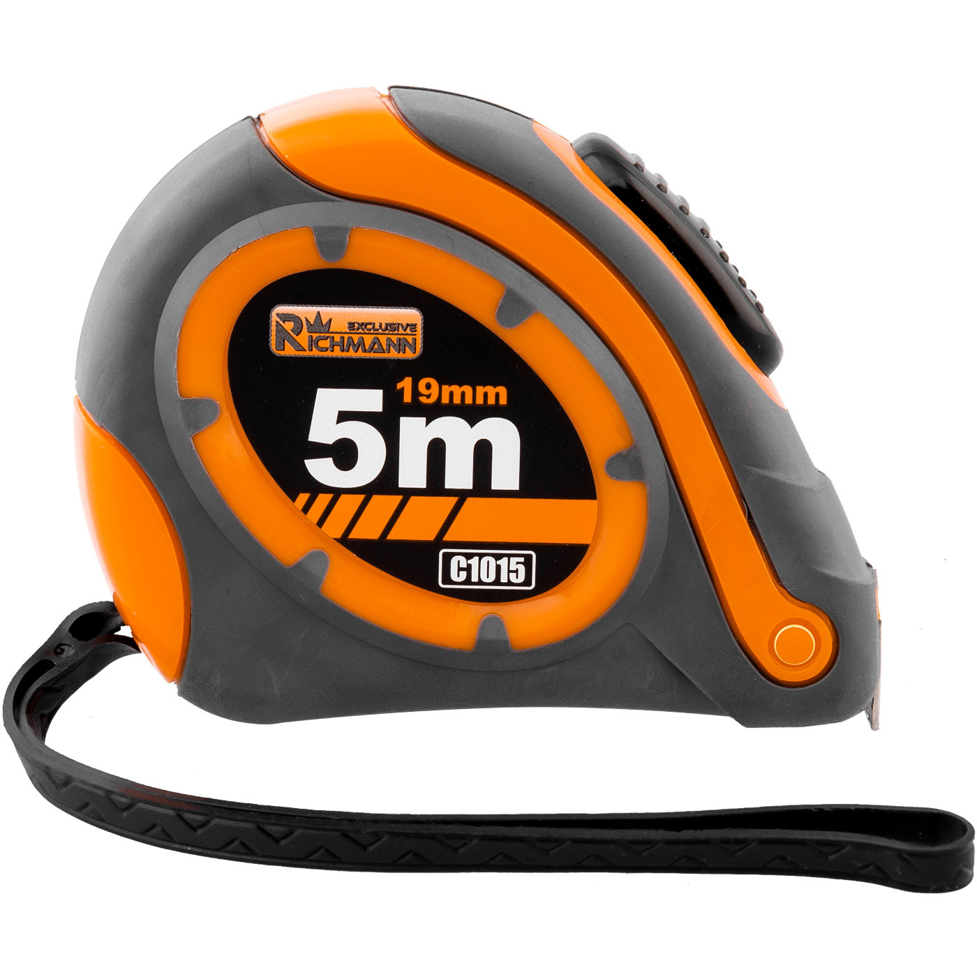 Wysokiej jakości miara zwijana o długości 5 m i szerokości 19 mm.