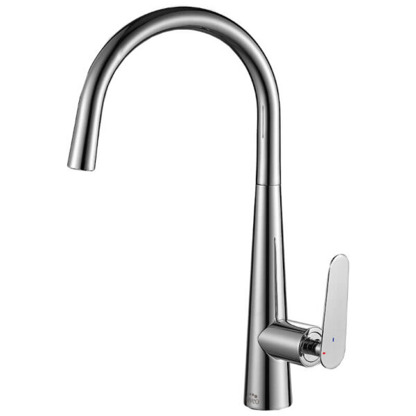 Nalda marki Laveo to kolekcja baterii o prostym oraz nowoczesny designie, dodatkowo z energooszczędnym systemem przepływu wody. Seria posiada modele z obrotowymi wylewkami, jedna dostępna w modelu „U”, druga z długą wyciąganą wylewką. Obie osadzone zostały na stożkowym korpusie wraz z ergonomiczną dźwignią o zaokrąglonym kształcie. Baterie wyposażone zostały w tak zwany „zimny start”. Ten prosty mechanizm pozwoli nam ograniczyć zużycie ciepłej wody. Polega on na tym, że w chwili uruchomienia z wylewki wypływa nam zawsze zimny strumień wody, nie zmieszany. Dzięki temu oszczędzamy energię do podgrzewania wody.