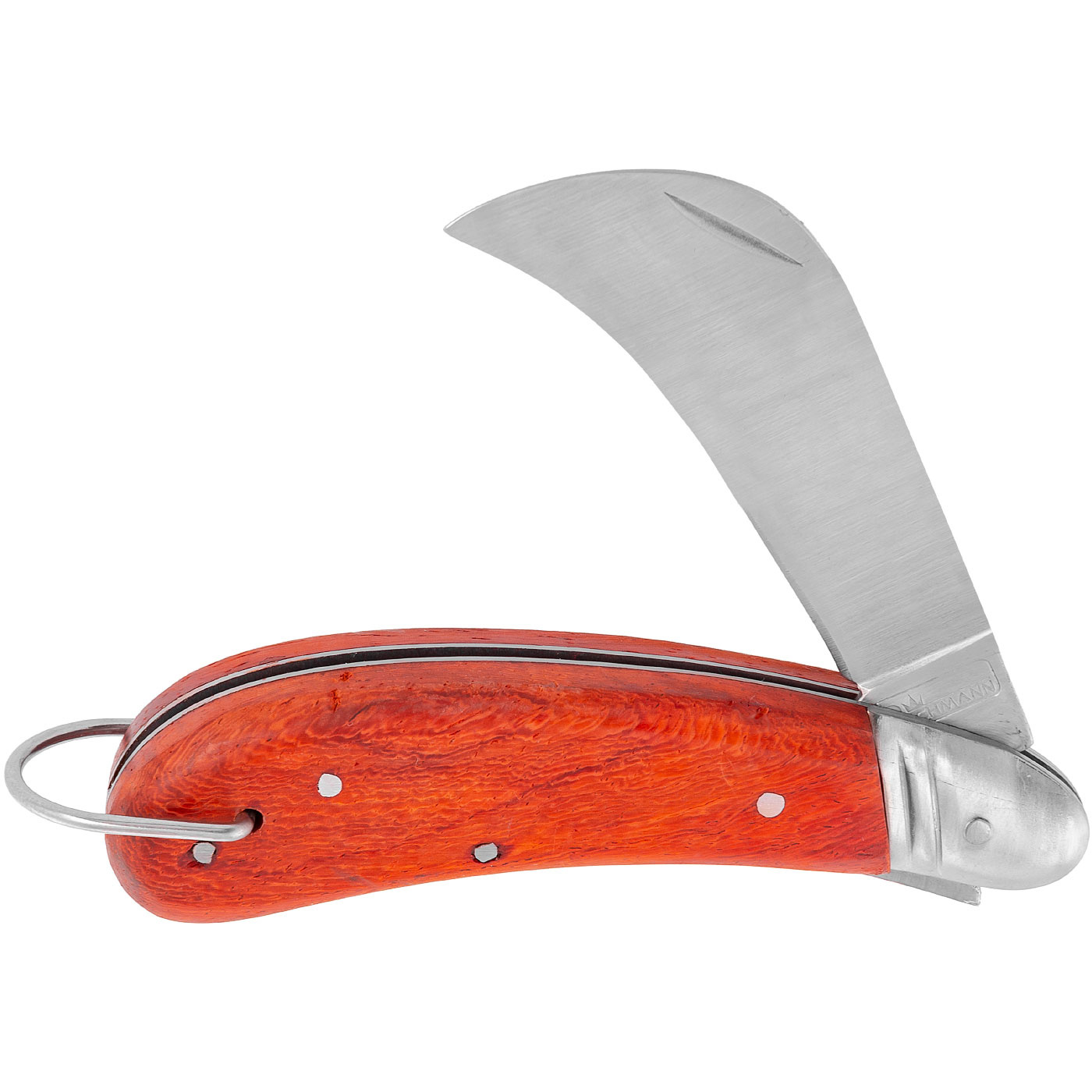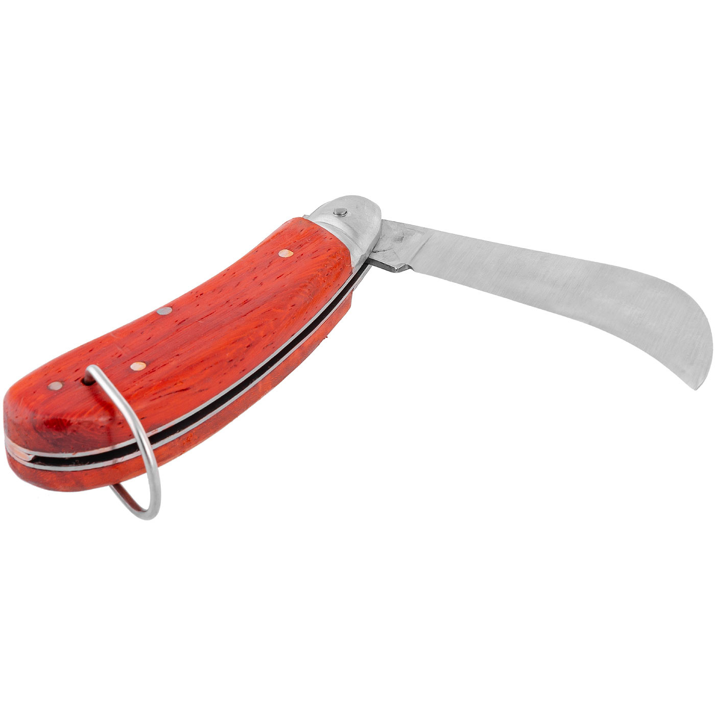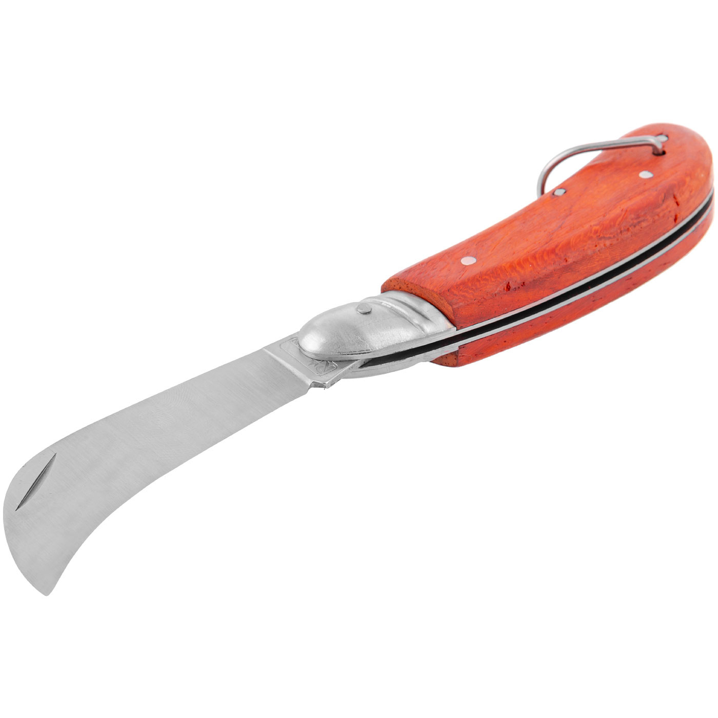 Nożyk monterski składany typu „sierpak” z zakrzywionym ostrzem do długości 70 mm.