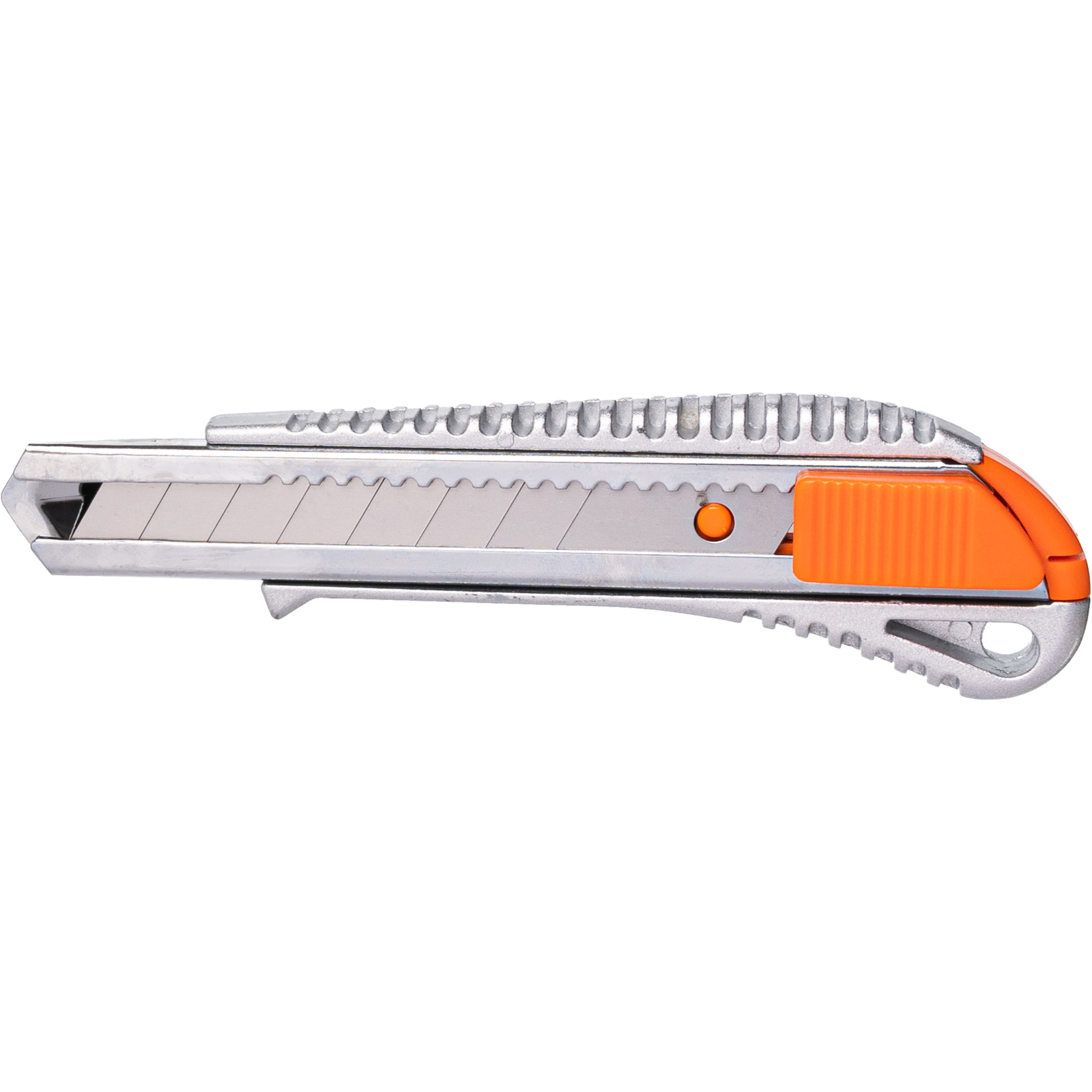 Uniwersalny stalowy nożyk o długości 155 mm z wymiennymi ostrzami 18 mm.
