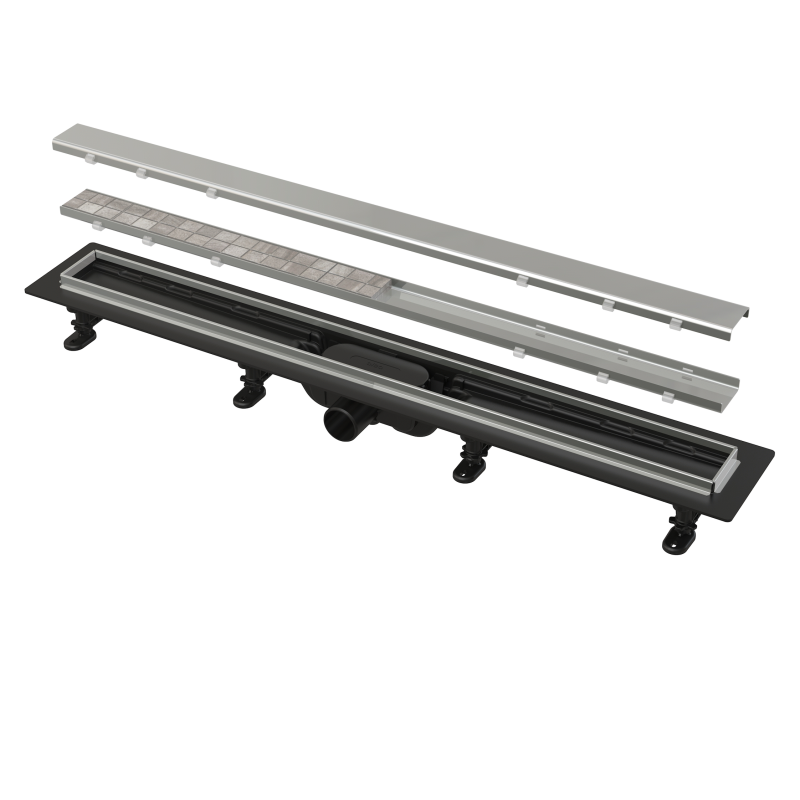 - Regulowane plastikowe nogi 0–35 mm umożliwiając szybką i wygodną instalację, w tym precyzyjne ustawienie spadu