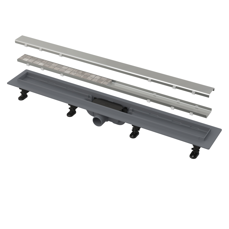 - Regulowane plastikowe nogi 0–35 mm umożliwiając szybką i wygodną instalację, w tym precyzyjne ustawienie spadu