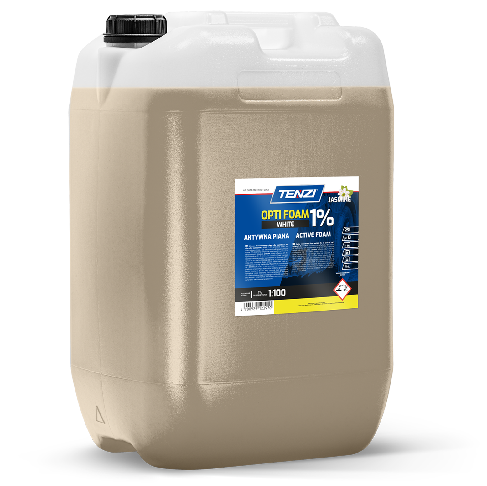 Profesjonalna piana aktywna w kolorze białym o zapachu jaśminowym to rewolucyjne rozwiązanie w dziedzinie pielęgnacji pojazdów. Stworzona specjalnie dla samochodów osobowych i ciężarowych, dostosowuje się do potrzeb każdego pojazdu, usuwając trudne zabrudzenia i przywracając pierwotny blask karoserii. Jednym z największych atutów tej piany jest jej formuła super skoncentrowana. Dzięki temu, już w roztworze zaledwie 1%, produkt prezentuje pełnię swojego działania, eliminując brud i tłuszcz. Oznacza to znaczne oszczędności i wydłużenie czasu użytkowania jednego opakowania. Przy minimalnym zużyciu, piana dokładnie i głęboko penetruje zabrudzenia, pozostawiając powierzchnię lśniącą i odświeżoną. Niezależnie od typu pojazdu, stanu zabrudzenia czy rodzaju powierzchni, ten produkt wyróżnia się na tle konkurencji. Opti Foam White przekracza oczekiwania użytkowników. W połączeniu z jej ekonomicznym charakterem, wydajnością i skoncentrowaną formułą, stanowi doskonałe narzędzie dla wszystkich, którzy pragną zachować swój pojazd w nienagannym stanie.