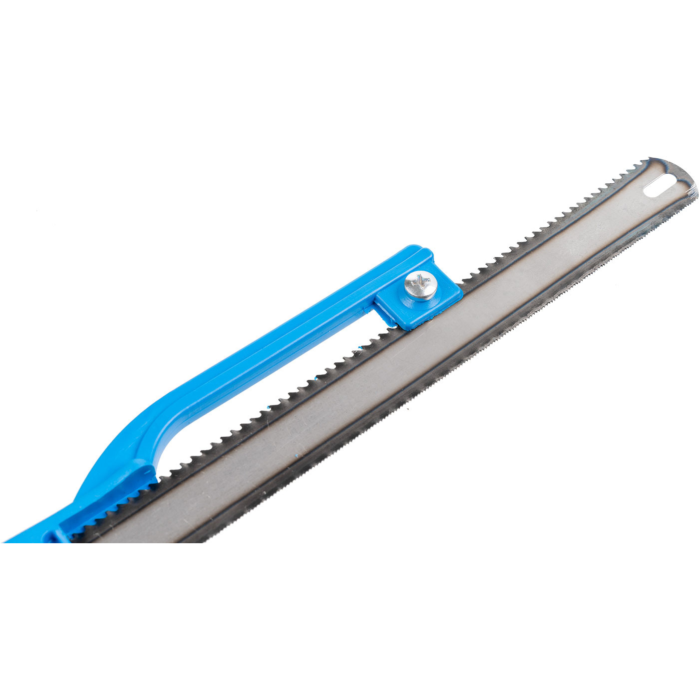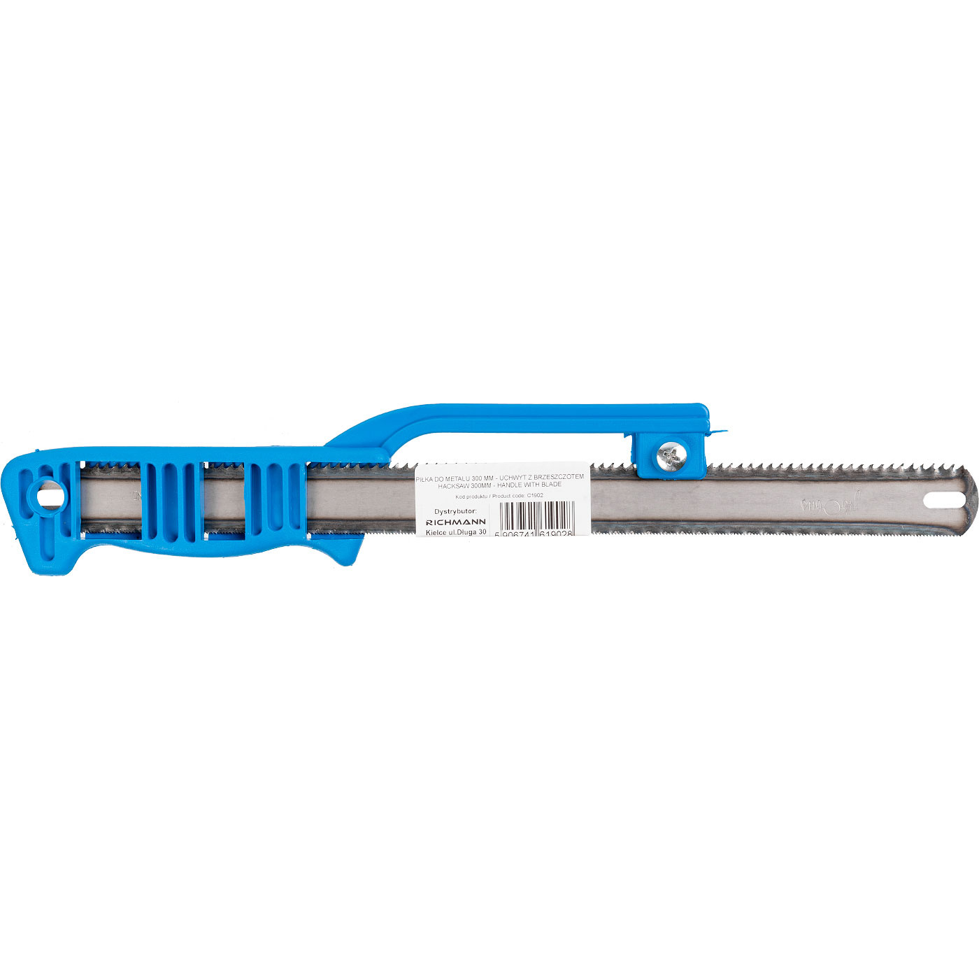 Piłka ręczna do metalu o długości z uchwytem z tworzywa sztucznego.