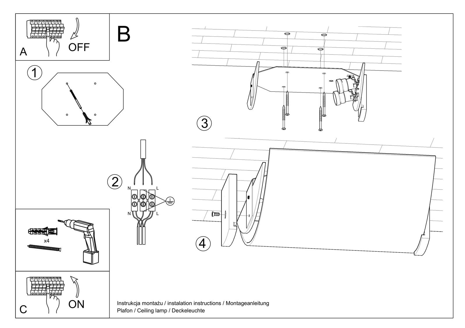 Plafon ma natynkowy system montażowy, więc zamontujesz go z łatwością i bez bałaganu - zarówno na suficie, jak i ścianie.