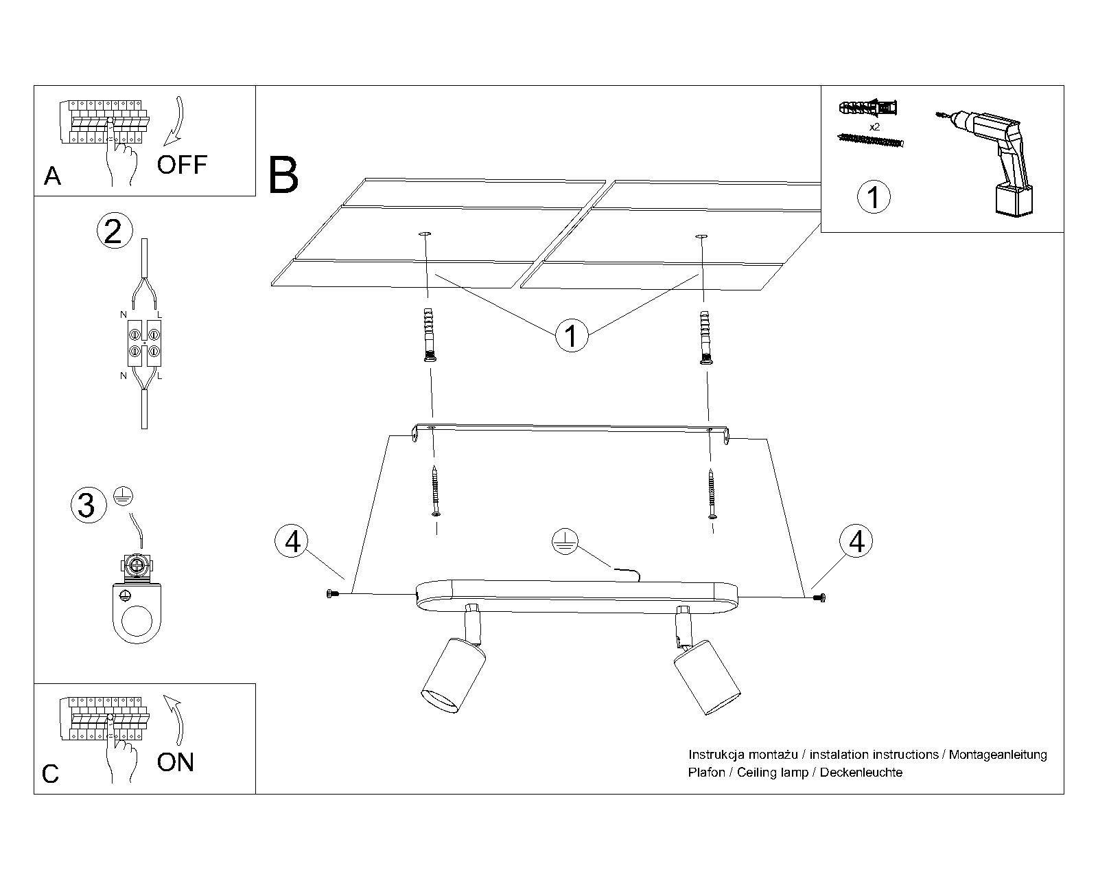 - Źródło światła: E27, 2x60W, 2x15W LED, 50-60Hz, ~220-230V, IP20, klasa ochronności IŹródło światła nie jest w komplecie. Wymiary: 33/6/13,5 cmMateriał: stalKolor: czarny