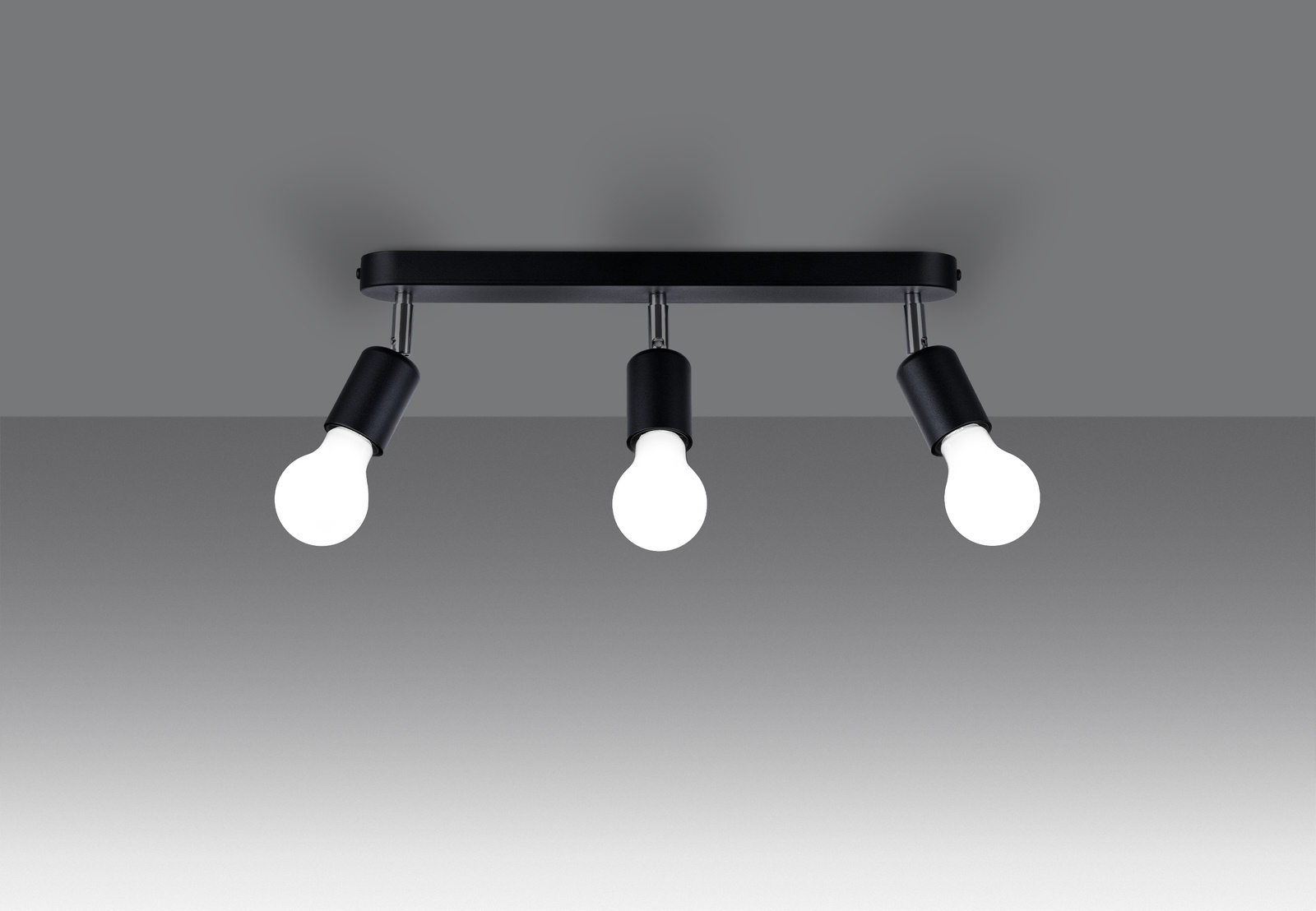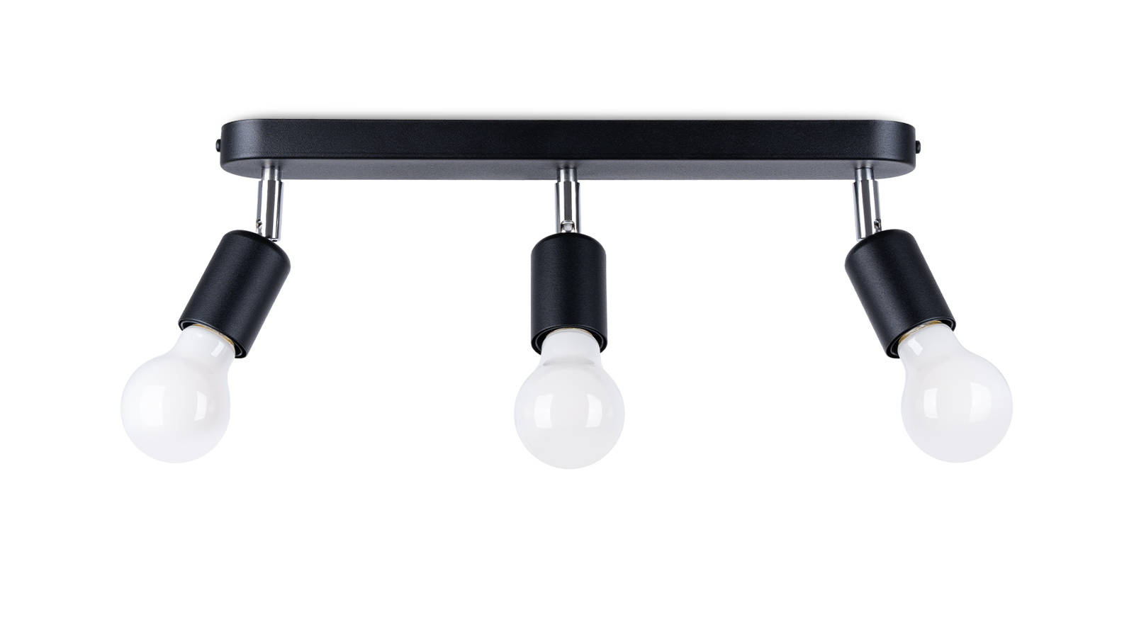- Źródło światła: E27, 3x60W, 3x15W LED, 50-60Hz, ~220-230V, IP20, klasa ochronności IŹródło światła nie jest w komplecie. Wymiary: 40/6/13,5 cmMateriał: stalKolor: czarny
