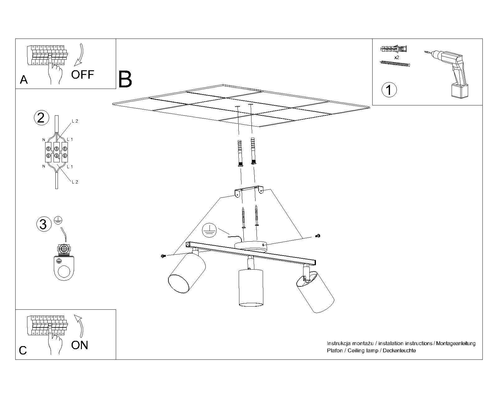 - Źródło światła: GU10, 3x40W, 3x12W LED, 50-60Hz, ~220-230V, IP20, klasa ochronności IŹródło światła nie jest w komplecie. Wymiary: 46/8/20 cmMateriał: stalKolor: biały