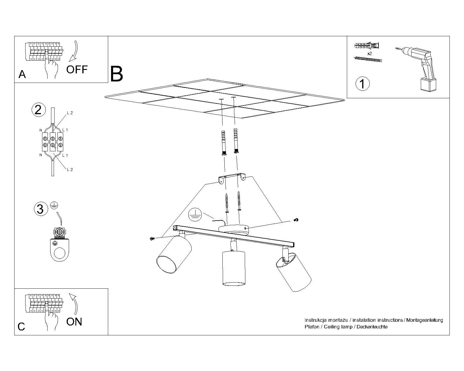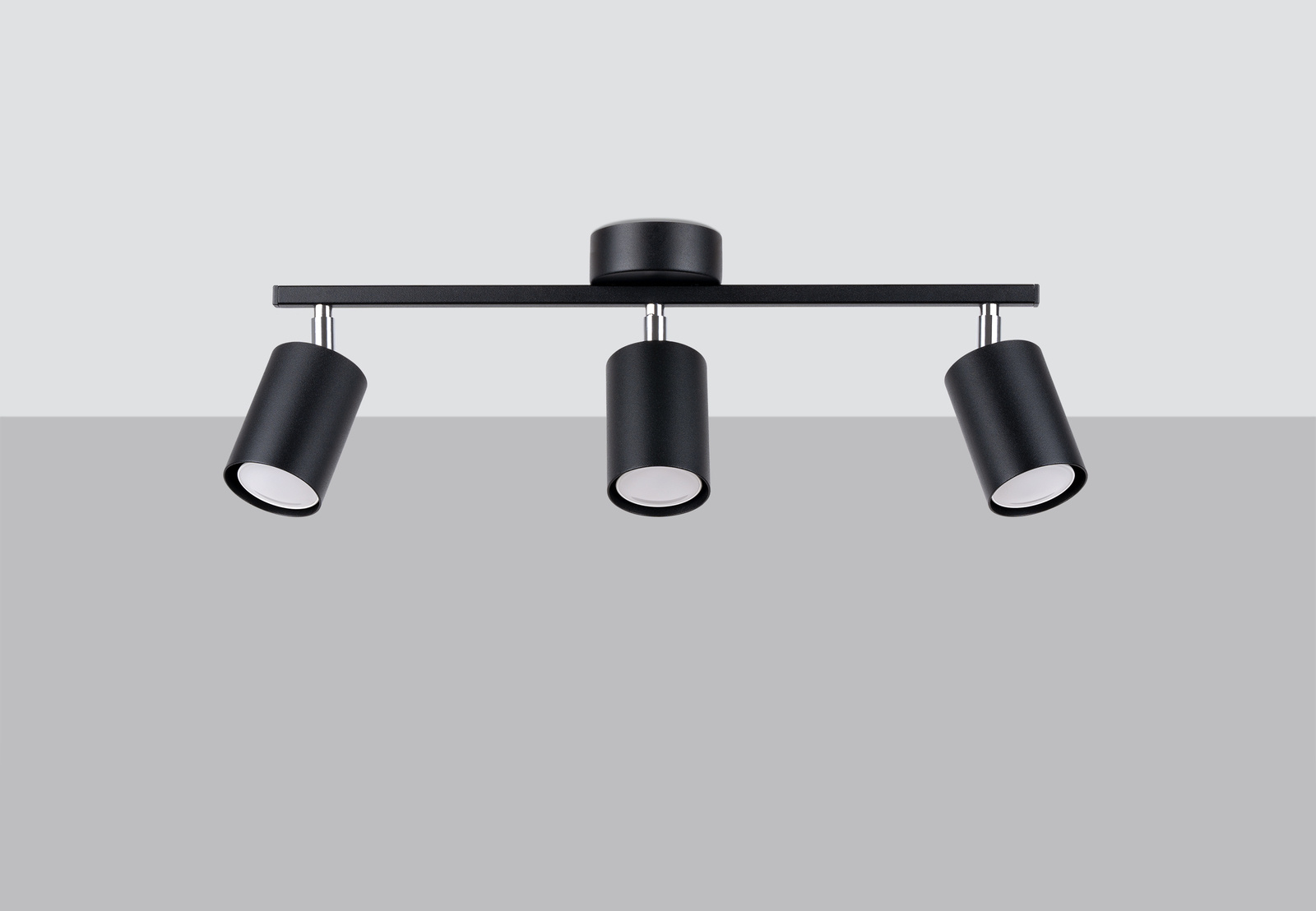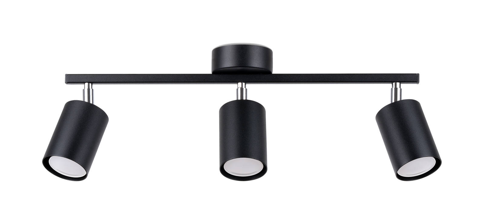- Źródło światła: GU10, 3x40W, 3x12W LED, 50-60Hz, ~220-230V, IP20, klasa ochronności IŹródło światła nie jest w komplecie. Wymiary: 46/8/20 cmMateriał: stalKolor: czarny