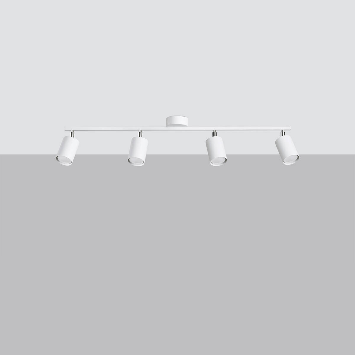- Źródło światła: GU10, 4x max 10W LED, 50Hz, ~230V, IP20, klasa ochronności I Źródło światła nie jest w komplecie. Wymiary: 100/24/20 cm Materiał: stal Kolor: biały