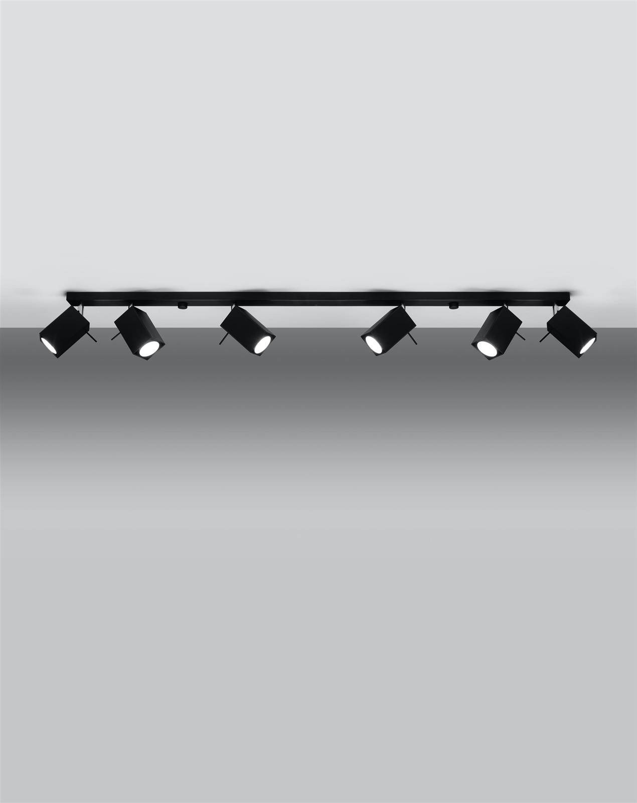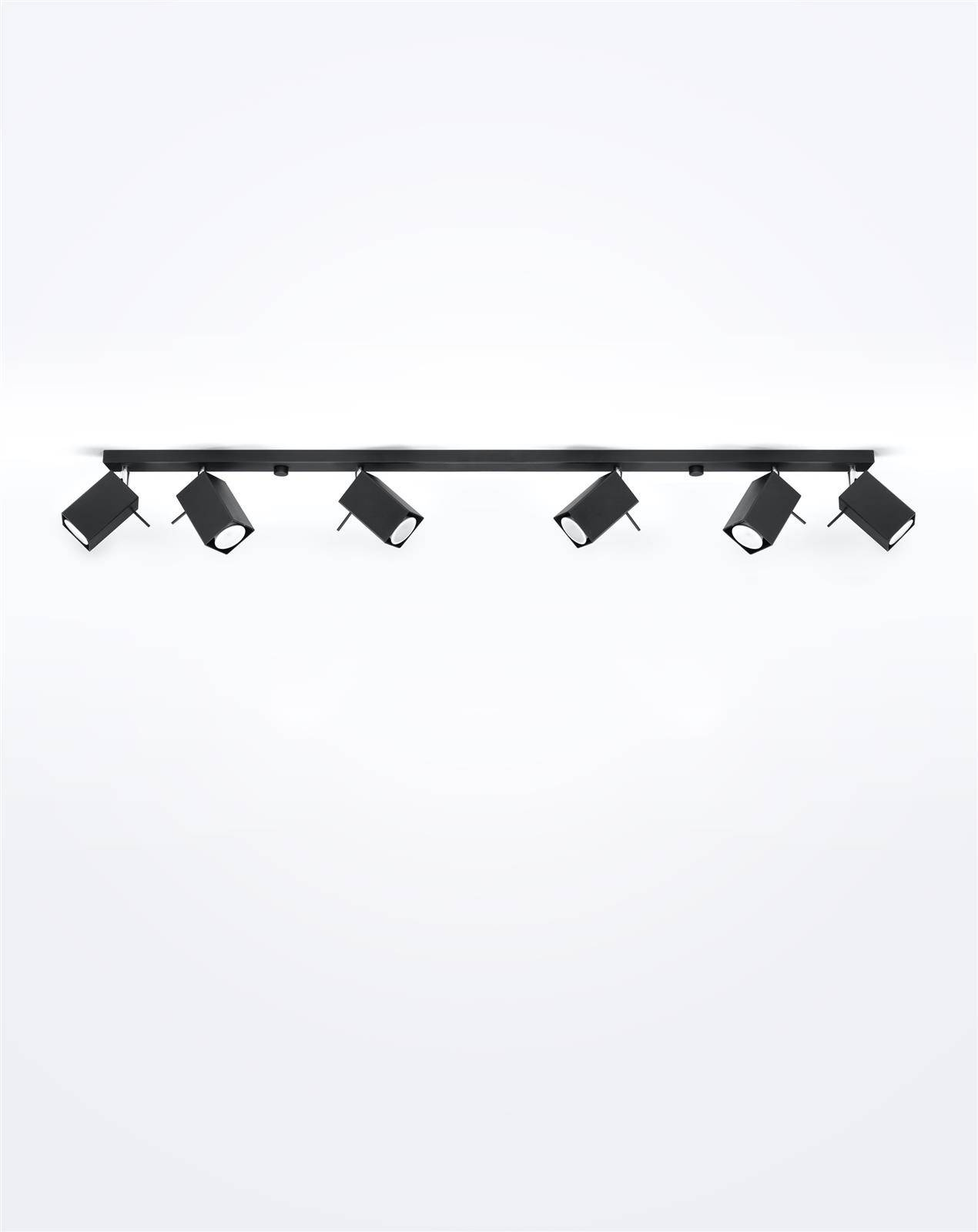 - Źródło światła: GU10, 6x40W, 6x12W LED, 50-60Hz, ~220-230V, IP20, klasa ochronności IŹródło światła nie jest w komplecie.Wymiary: 118/6/16 cmMateriał: stalKolor: czarny