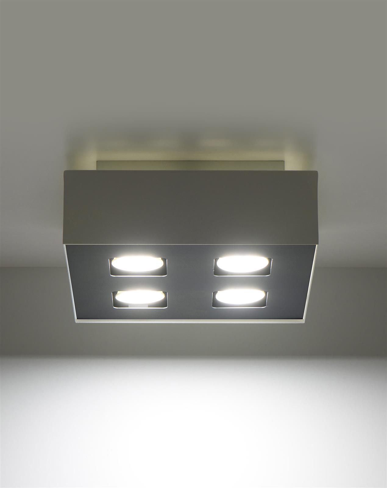 - Źródło światła: GU10, 4x40W, 4x12W LED, 50-60Hz, ~220-230V, IP20, klasa ochronności IŹródło światła nie jest w komplecie.Wymiary: 24/24/11 cmMateriał: stalKolor: biały, czarny