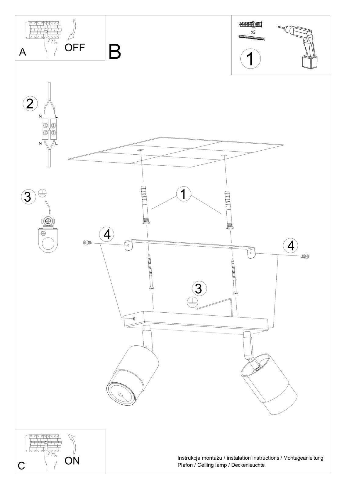 - Źródło światła: GU10, 2x40W, 2x12W LED, 50-60Hz, ~220-230V, IP20, klasa ochronności IŹródło światła nie jest w komplecie.Wymiary: 30/5/18 cmMateriał: stalKolor: czarny/chrom