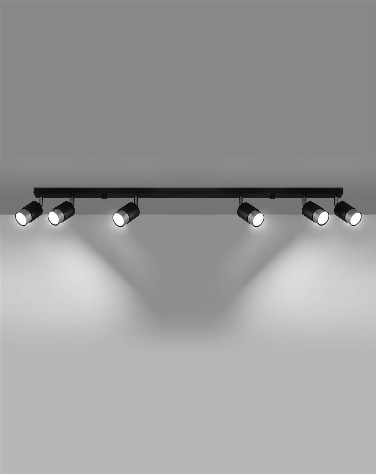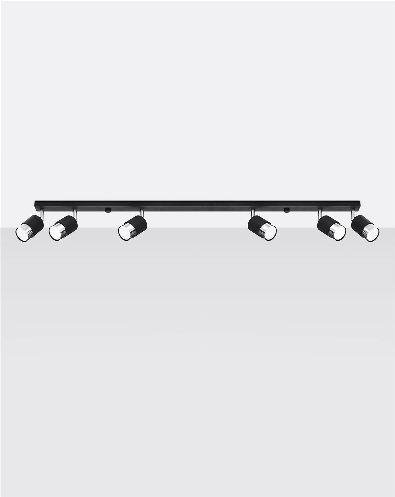 - Źródło światła: GU10, 6x40W, 6x12W LED, 50-60Hz, ~220-230V, IP20, klasa ochronności IŹródło światła nie jest w komplecie.Wymiary: 117/5/18 cmMateriał: stalKolor: czarny/chrom