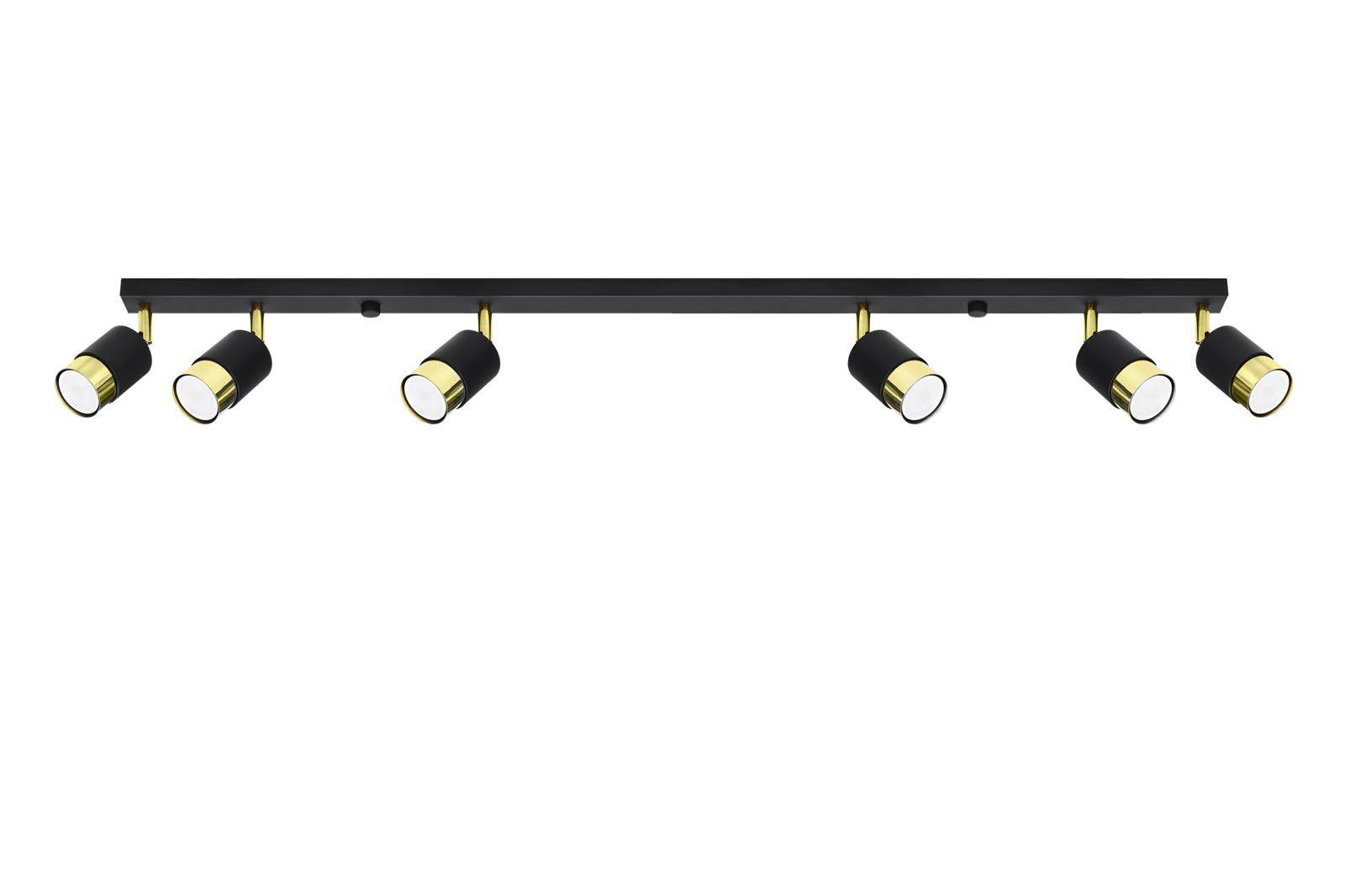 - Źródło światła: GU10, 6x40W, 6x12W LED, 50-60Hz, ~220-230V, IP20, klasa ochronności IŹródło światła nie jest w komplecie.Wymiary: 117/5/18 cmMateriał: stalKolor: czarny/złoty