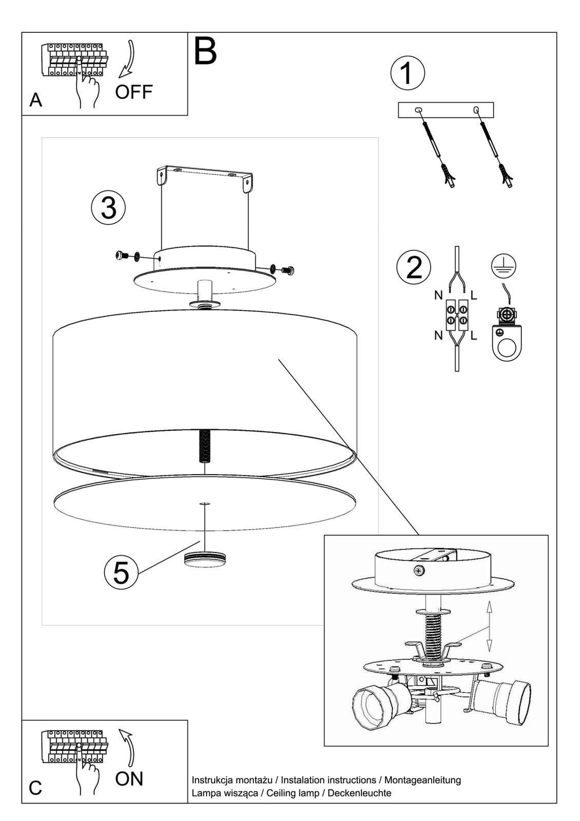 - Źródło światła: E27, 3x60W, 3x15W LED, 50-60Hz, ~220-230V, IP20, klasa ochronności IŹródło światła nie jest w komplecie.Wymiary: 30/30/22 cmMateriał: tkanina, szkło, stalKolor: biały