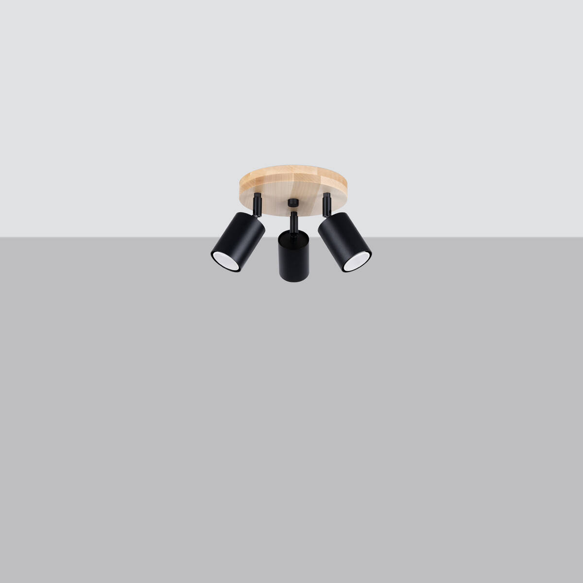 - Źródło światła: GU10, 3x max 10W, 50Hz, ~230V, IP20, klasa ochronności IŹródło światła nie jest w komplecie. Wymiary: 33/33/17 cmMateriał: stal/drewnoKolor: czarny, naturane drewno