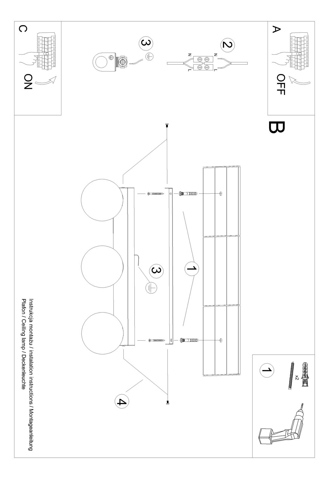 - Źródło światła: G9, 3x12W LED, 50-60Hz, ~220-230V, IP20, klasa ochronności IŹródło światła nie jest w komplecie.Wymiary: 50/12/14,5 cmMateriał: stal, szkło Kolor: biały