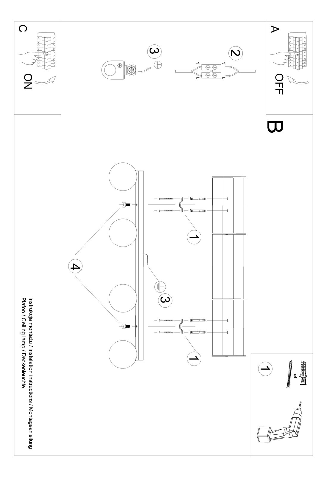 - Źródło światła: G9, 4x12W LED, 50-60Hz, ~220-230V, IP20, klasa ochronności IŹródło światła nie jest w komplecie.Wymiary: 88/12/14,5 cmMateriał: stal, szkło Kolor: biały
