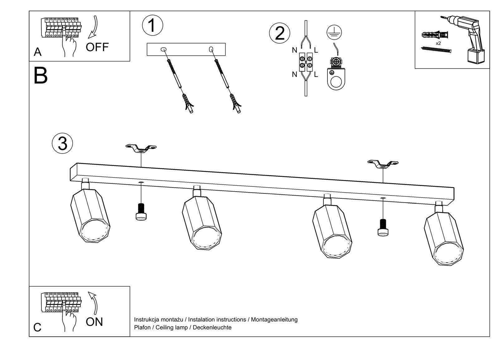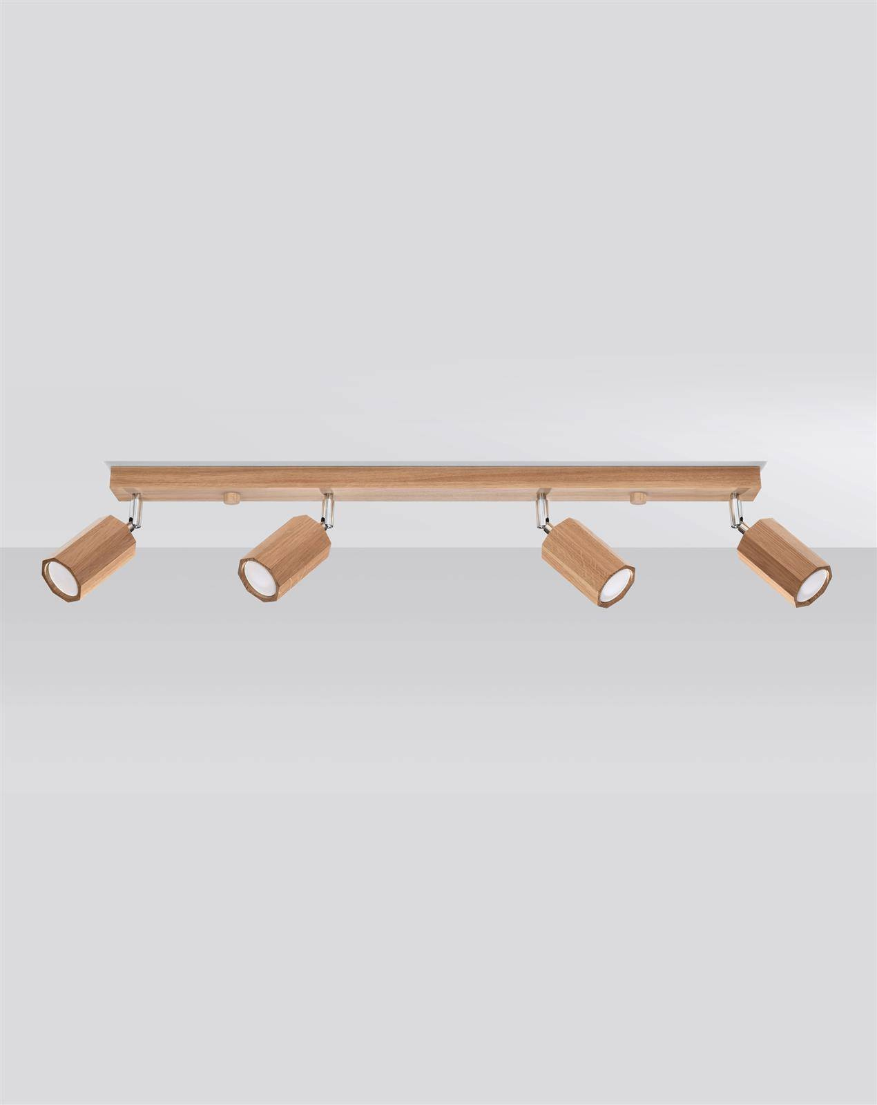 - Źródło światła: GU10, 4x40W, 4x12W LED, 50-60Hz, ~220-230V, IP20, klasa ochronności IŹródło światła nie jest w komplecie.Wymiary: 80/5/20 cmMateriał: drewno Kolor: dąb