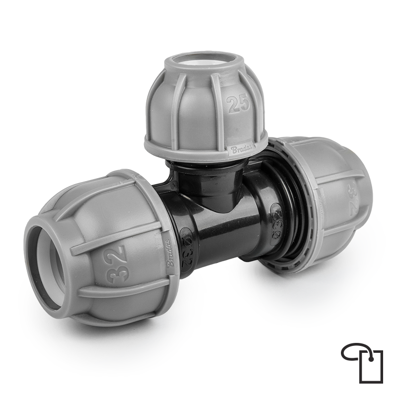 PN10 Trójnik do rur PE 32 / 25 / 32 mm - metka