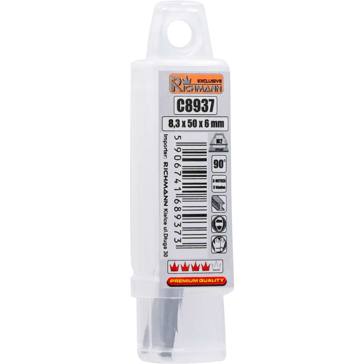 Pogłębiacz do metalu o wymiarach 8,3 x 50 x 6 mm.