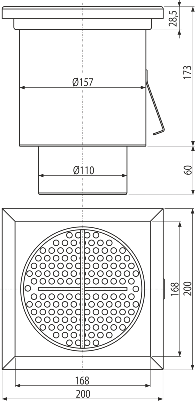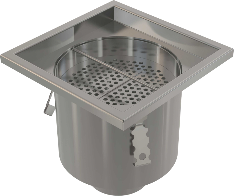 Przemysłowy odpływ punktowy 200×200, stal nierdzewna AISI 304