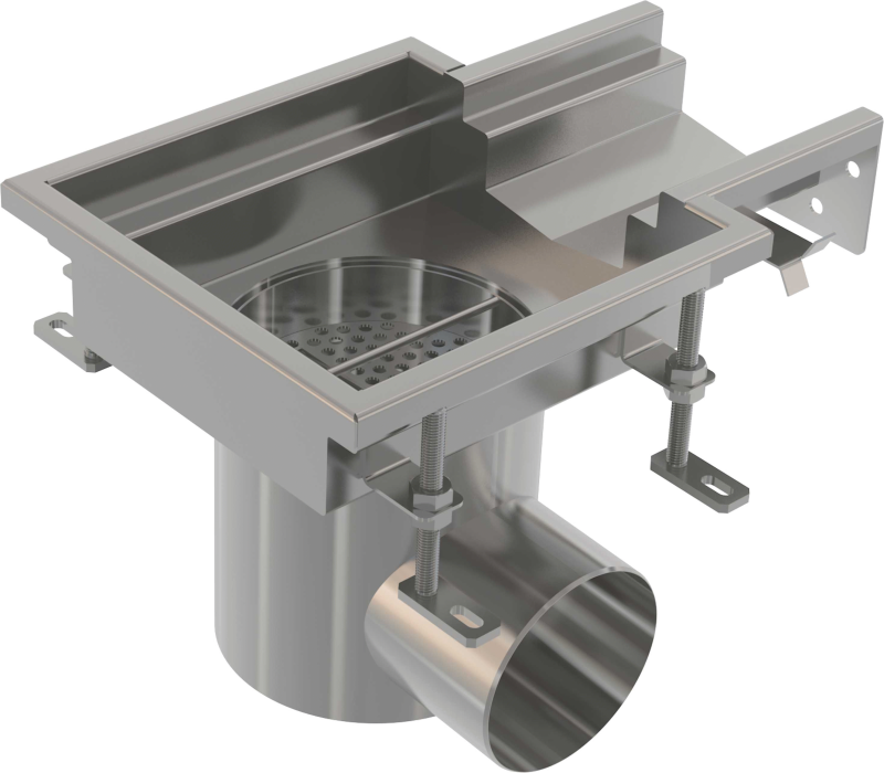 Przemysłowy odpływ punktowy z wpustem skrzynkowym 250×250-135, stal nierdzewna AISI 304