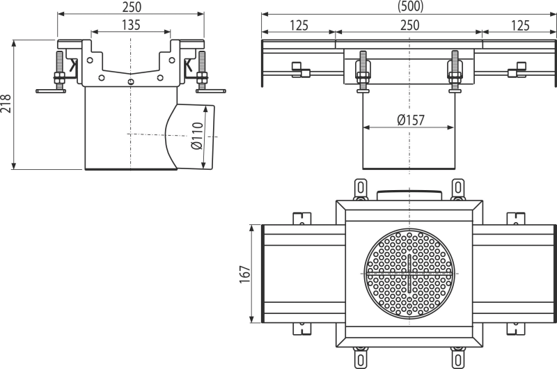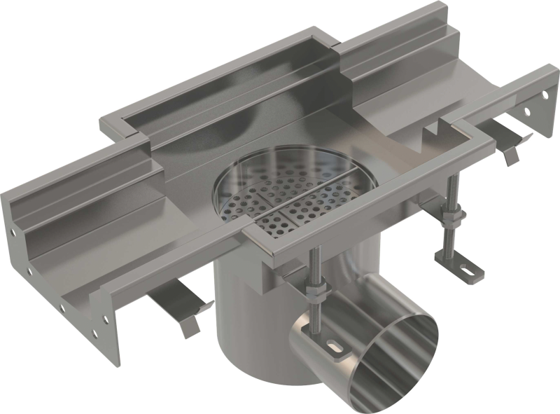 Przemysłowy odpływ punktowy z wpustem skrzynkowym 250×250-135, stal nierdzewna AISI 316L