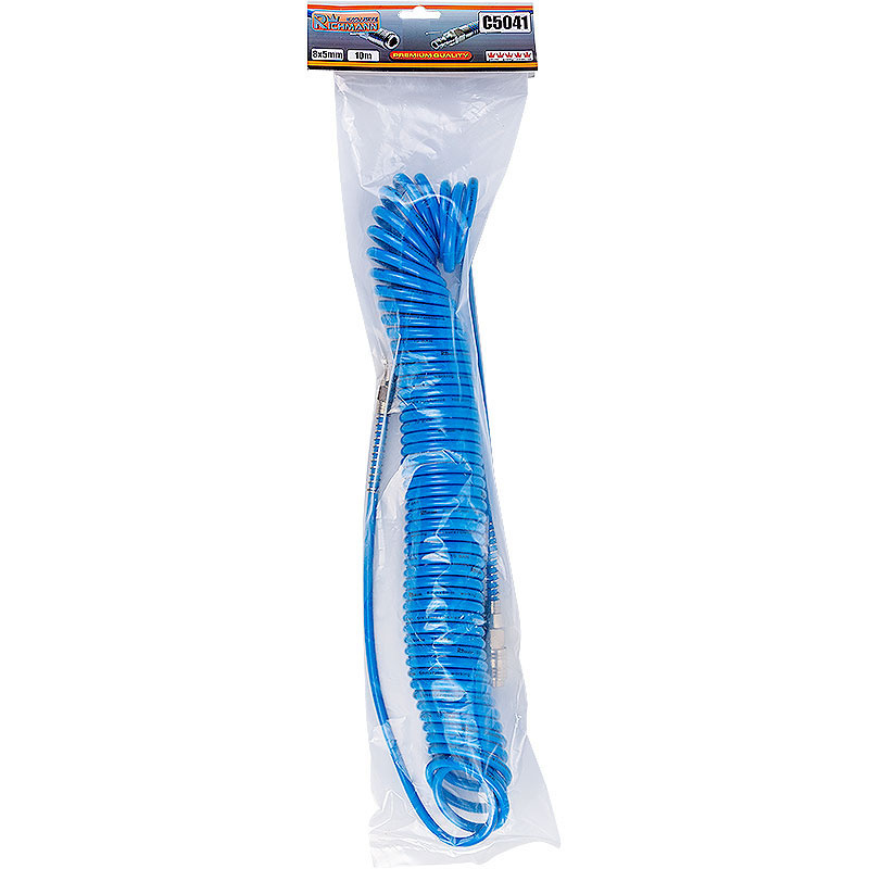 Spiralny wąż ciśnieniowy pneumatyczny o średnicy 8x5 mm.