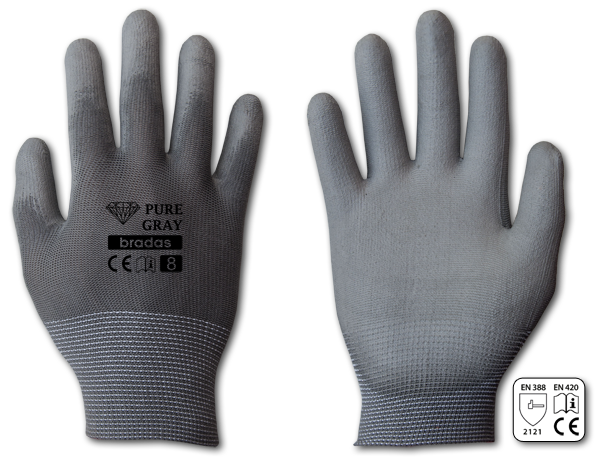 Rękawice ochronne PURE GRAY poliuretan, rozmiar 8