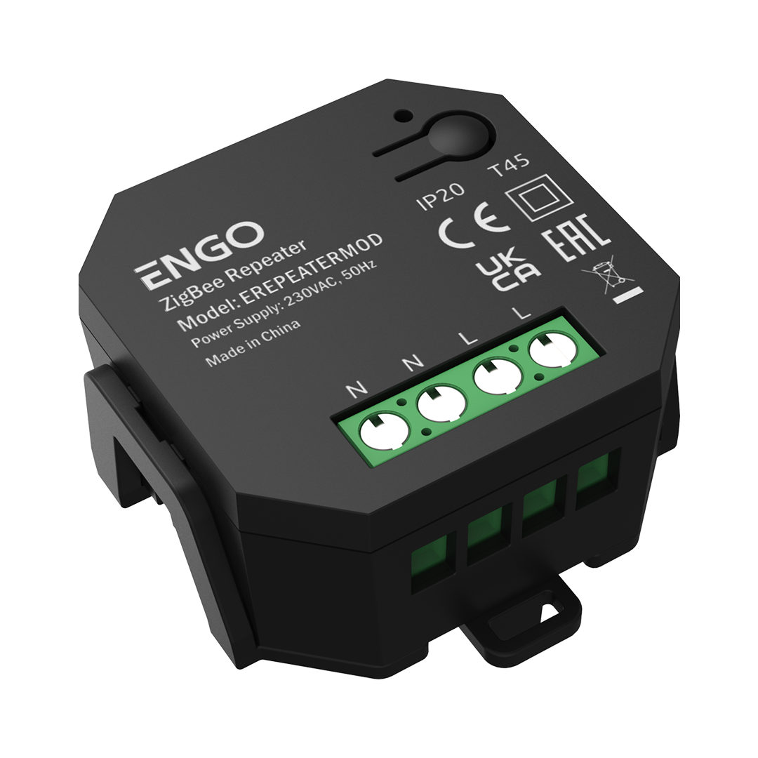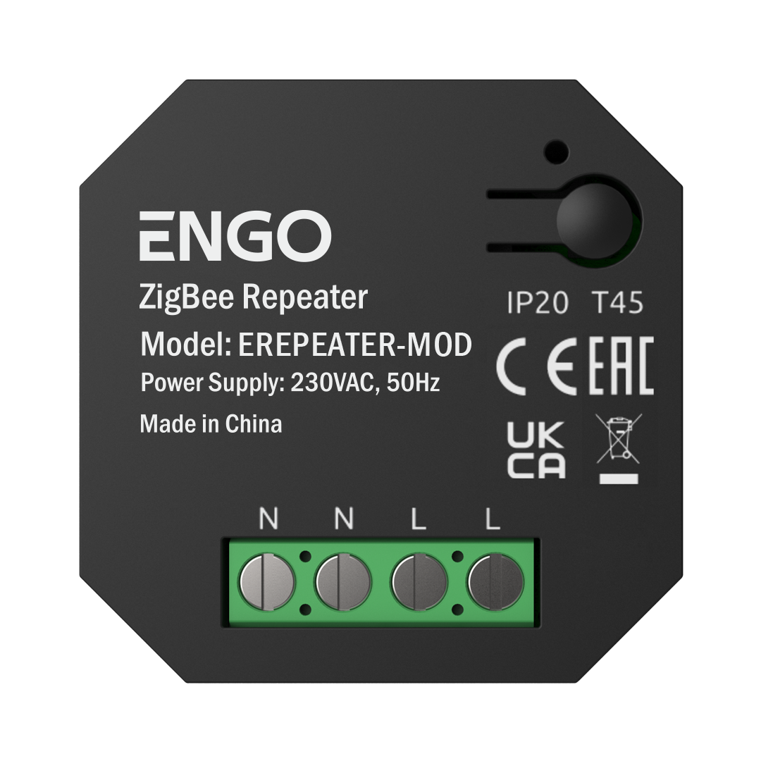 • Zwiększa zasięg sieci bezprzewodowej w systemie ENGO Smart Neutralizuje zakłócenia architektoniczne (betonowe ściany, zbrojenia etc.) Jest montowany dopuszkowo – nie zajmuje wejścia w gniazdku Pracuje w standardzie ZigBee 3.0