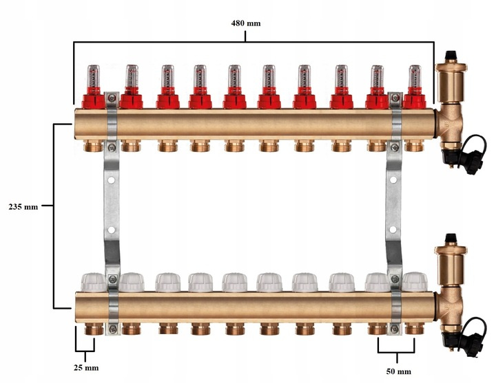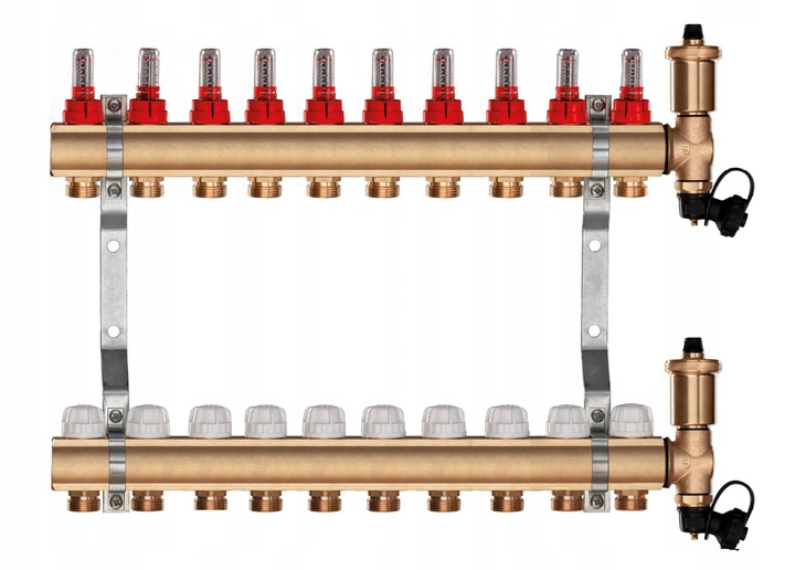 - Rozdzielacz mosiężny do ogrzewania podłogowego podłogówki 10 sekcji