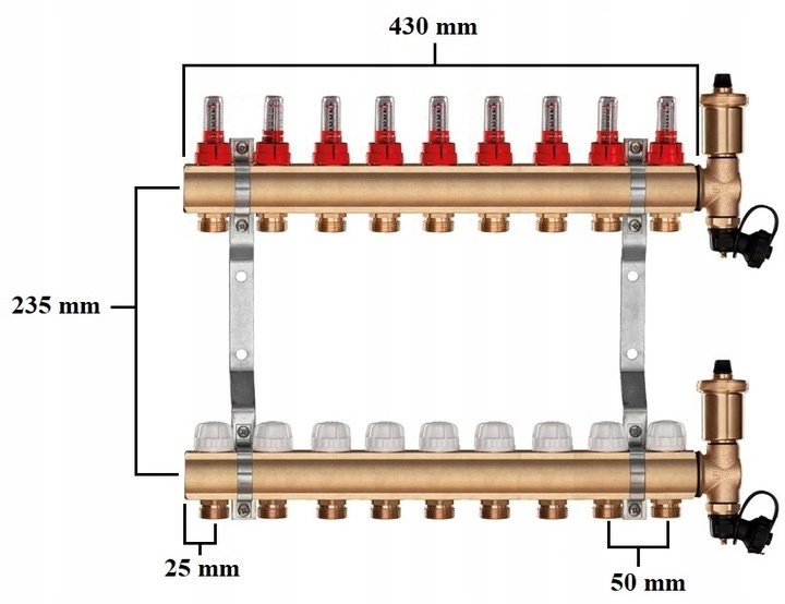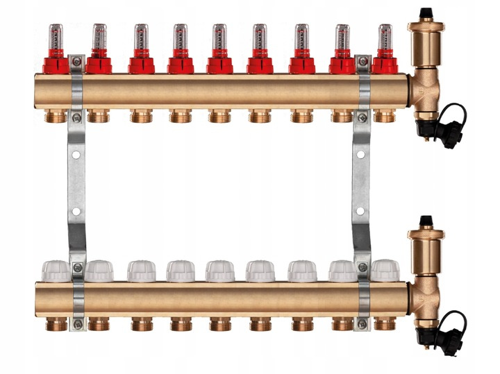 - Rozdzielacz mosiężny do ogrzewania podłogowego podłogówki 9 sekcji