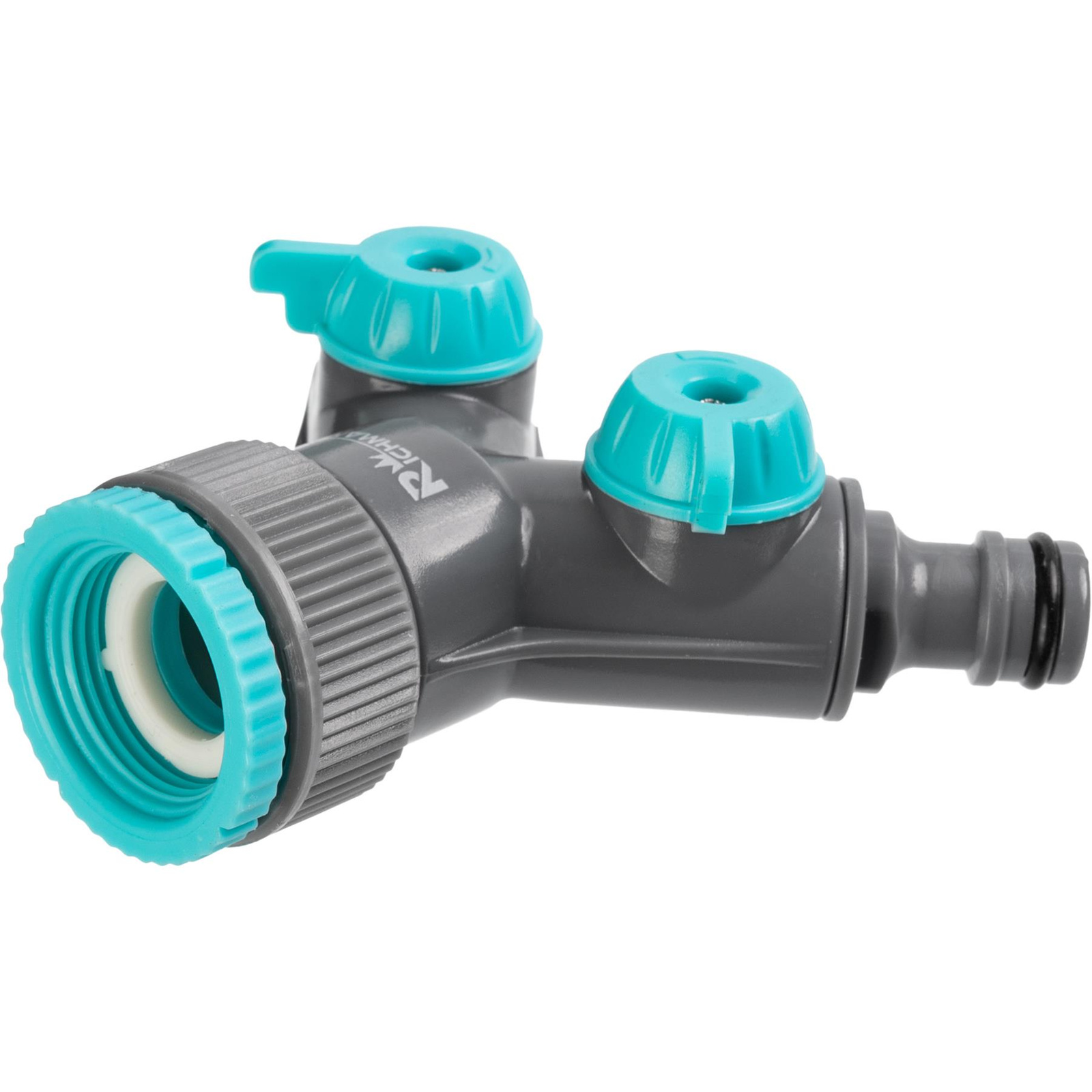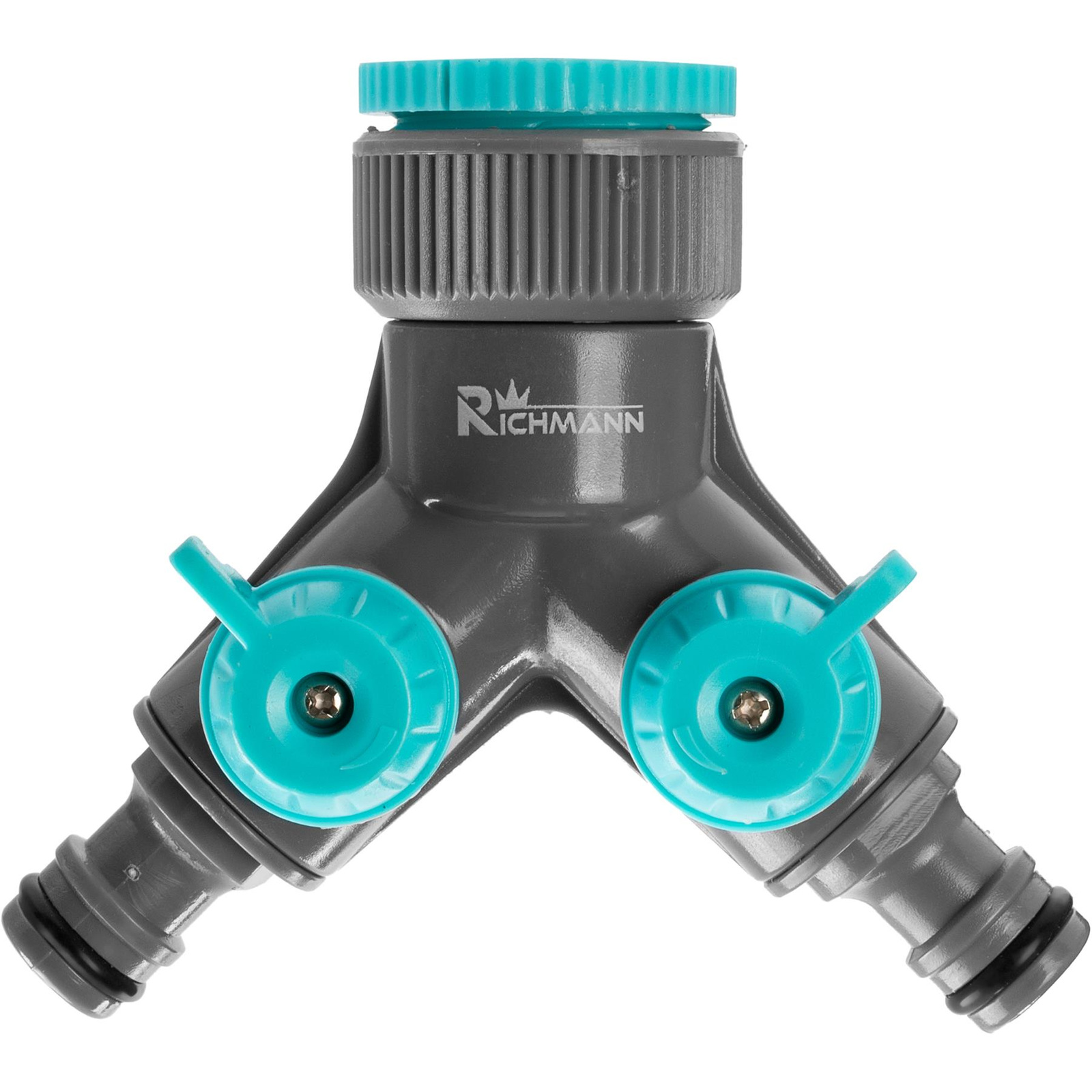 Rozdzielacz ogrodowy z zaworami do węży ogrodowych ½” (12.5 mm).