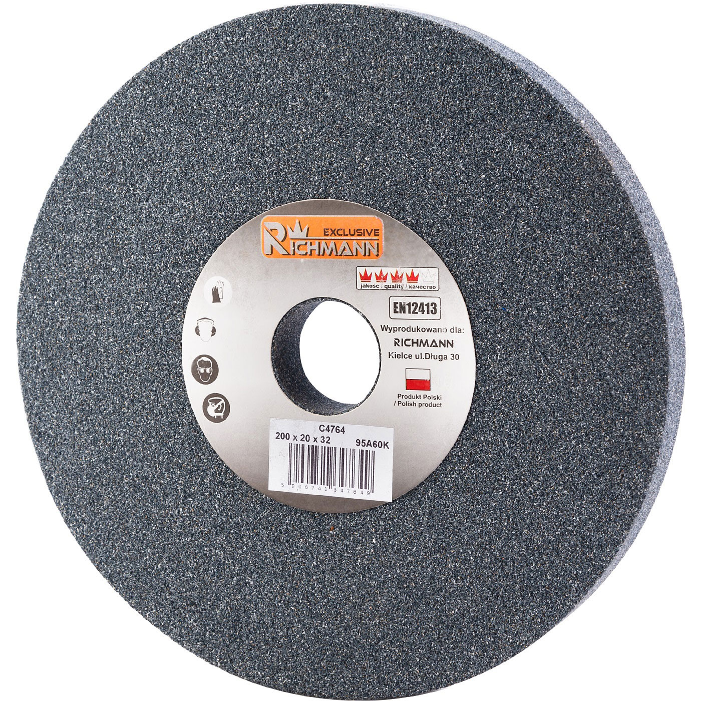 Ceramiczna ściernica szlifierska szara o wymiarach 200 x 20 x 32 mm.