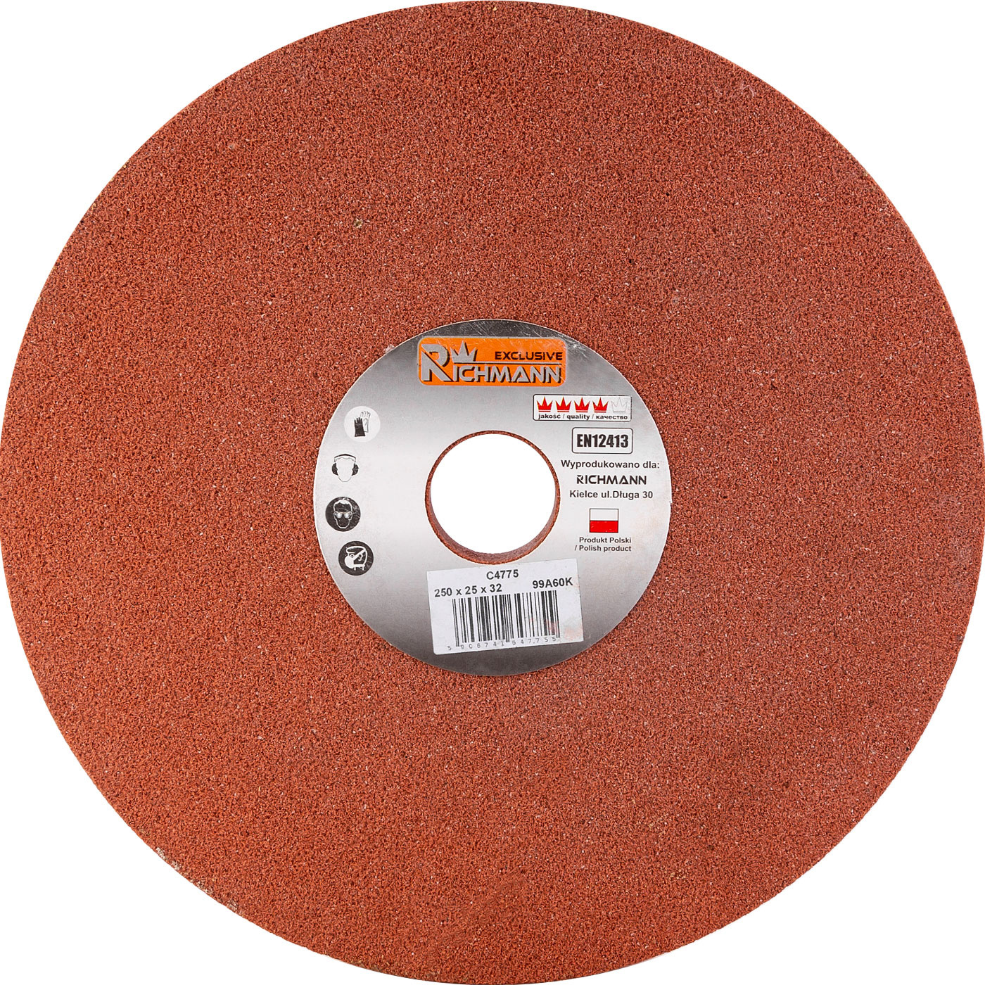 Ceramiczna ściernica szlifierska czerwona o wymiarach 250 x 25 x 32 mm.
